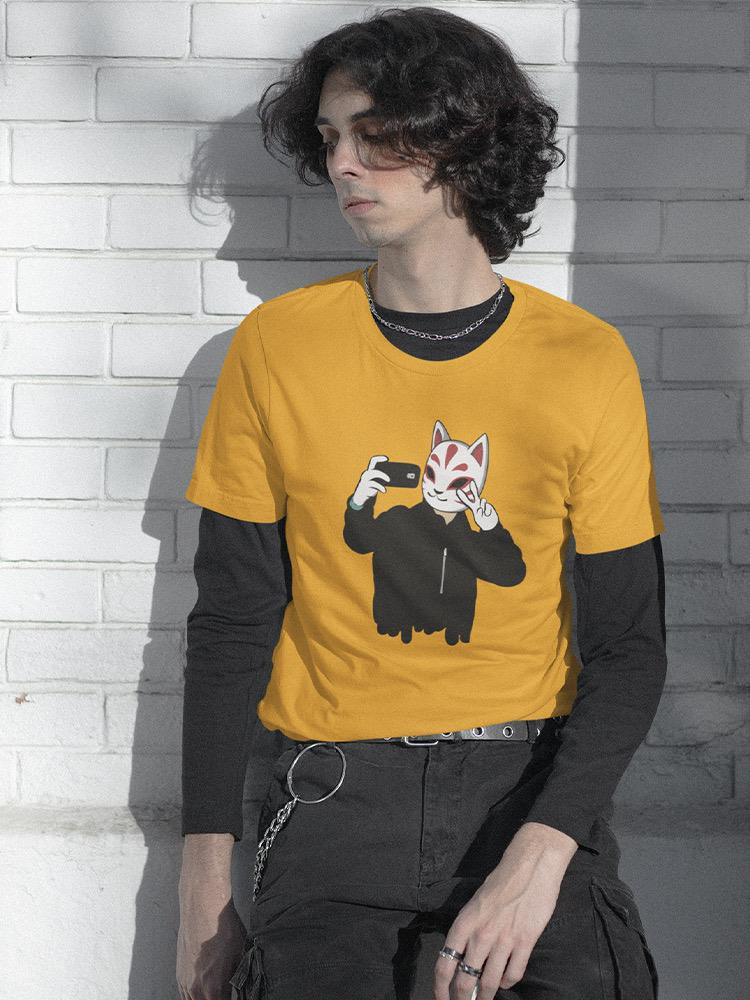 Cat Mask Selfie T-shirt -SmartPrintsInk Designs - S / Male / Gold is backordered and will ship as soon as it is back in stock.