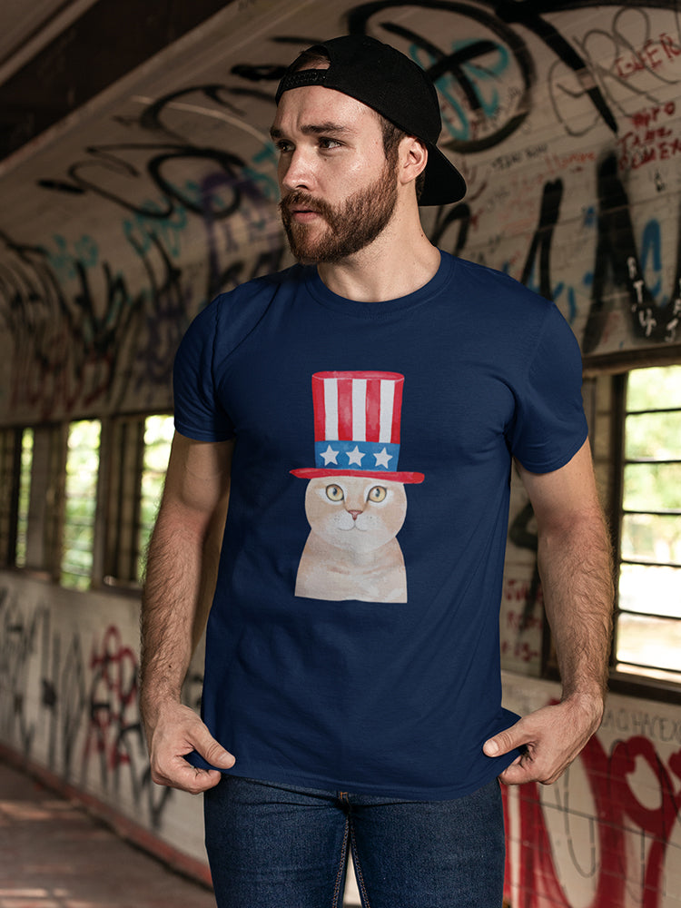 American Tophat Cat. Wear This Cool Garment For Your Everyday Life! Men's Navy T-shirt. Design by Smartprints.