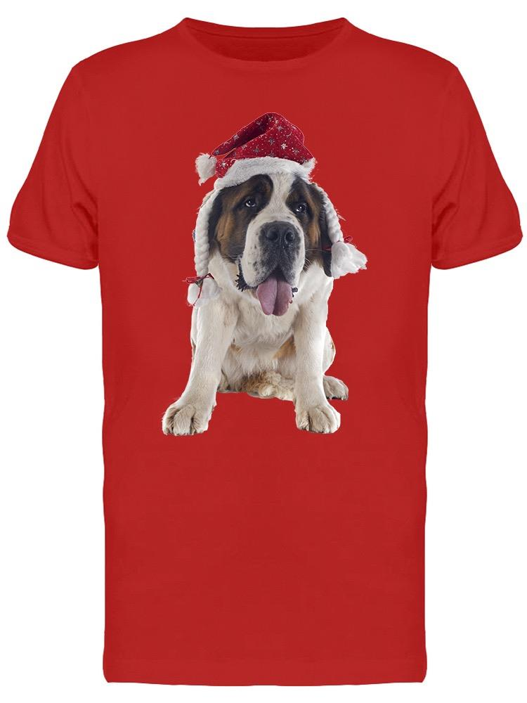 Christmas Hat St. Bernard Dog Tee Men's -Image by Shutterstock - S / Male / Red is backordered and will ship as soon as it is back in stock.