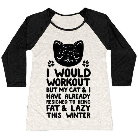 I WOULD WORKOUT BUT MY CAT AND I HAVE RESIGNED TO BEING FAT & LAZY WOMEN'S TRI-BLEND BASEBALL TEE