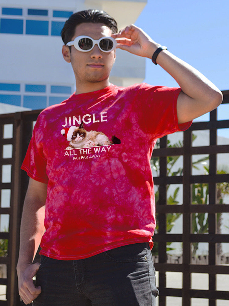 Jingle Far Away. Grumpy Cat Tie-Dye Crystal - - M / Male / Red is backordered and will ship as soon as it is back in stock.