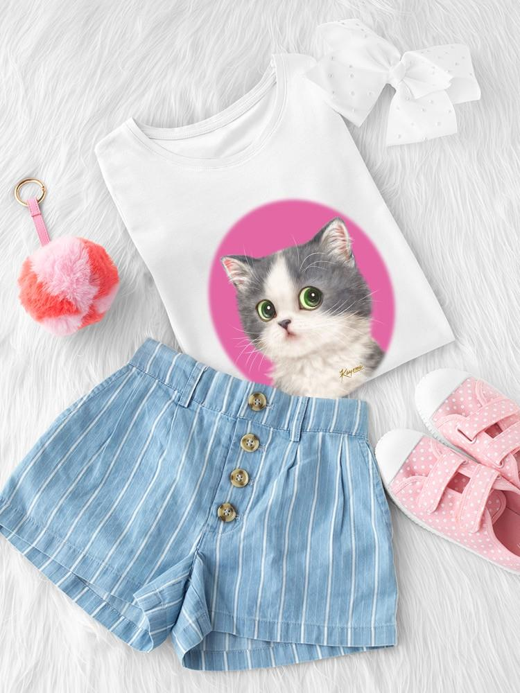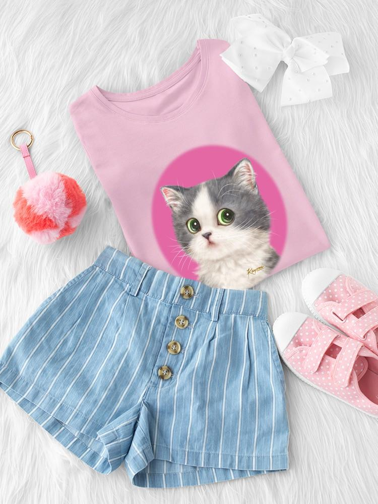 Suspicious Cat T-shirt -Kayomi Harai Designs - T-shirt Toddler / Pink / 4T is backordered and will ship as soon as it is back in stock.