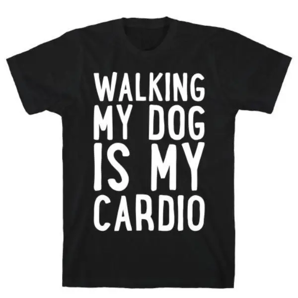 WALKING MY DOG IS MY CARDIO WHITE PRINT T-SHIRT