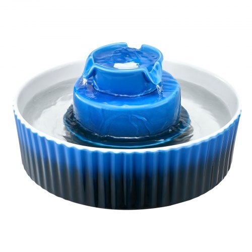 Ceramic Cat Water Fountain, 2.1L/71oz Cupcake Pet Fountain, Porcelain Cat Water Dispenser with Ultra-Quiet Pump, 360? Drinking Area and Multi-Layer Filtration System, for Cats and Dogs (Blue)