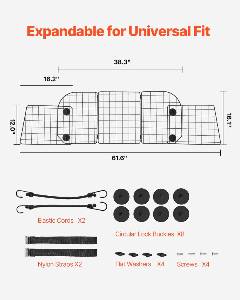 Dog Car Barrier, 38.5"-61.6" Adjustable Car Divider for Trunk Cargo Area, Universal-Fit Back Seat Heavy-Duty Wire Mesh Dogs Separator Guard Net, Vehicle Pet Barrier for Sedans, Trucks and SUVs