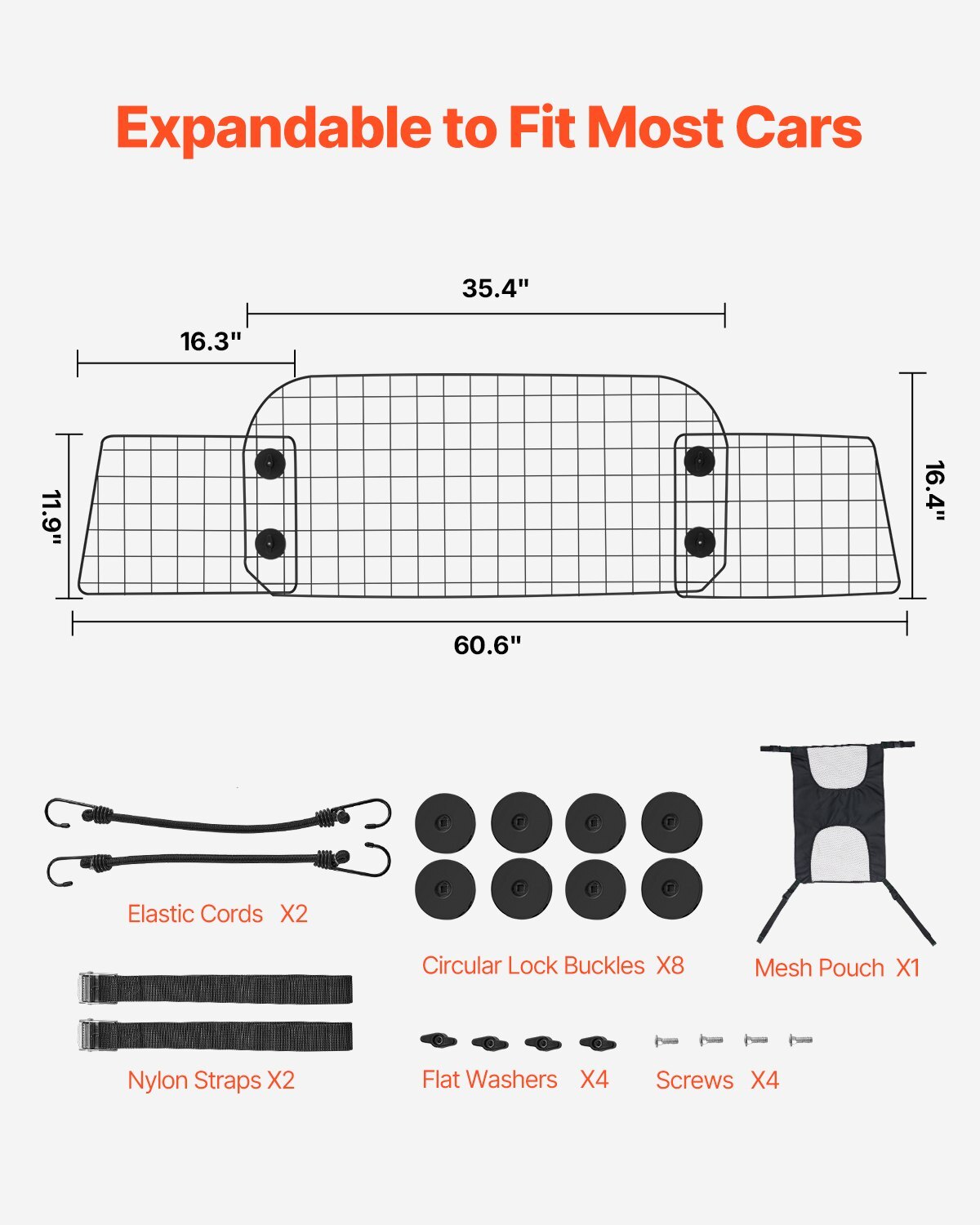 Dog Car Barrier, 35.4"-60.6" Adjustable Car Divider for Front Seat Installation, Universal-Fit Heavy-Duty Wire Mesh Dogs Separator Guard Net, Vehicle Pet Barrier for Sedans, Trucks and SUVs