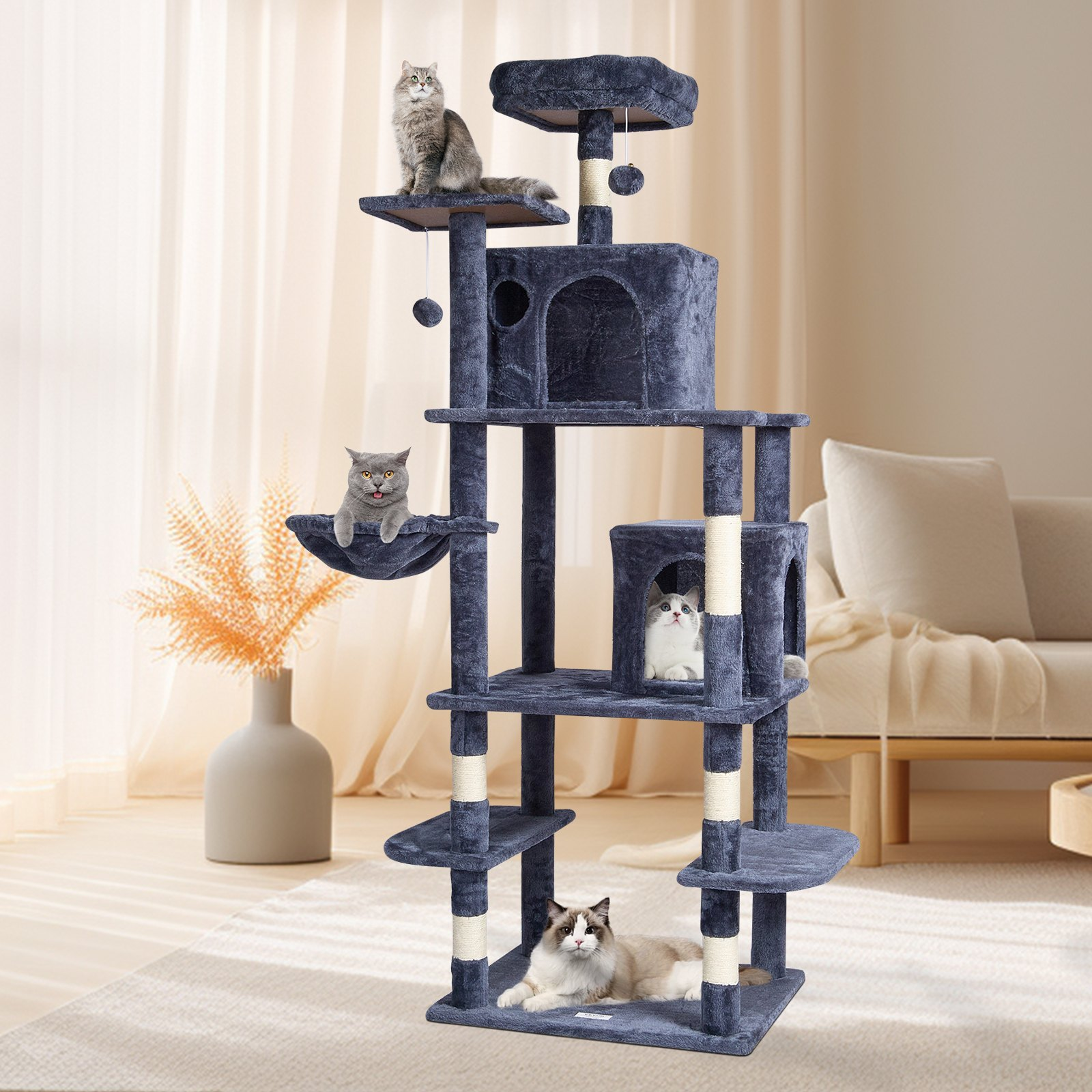 VEVOR 68.5” Cat Tree Tower | Multi-Level Indoor Cat Furniture with 2 Condos, Hammock, Top Perch, Jump Platforms & Sisal Posts – Dark Grey