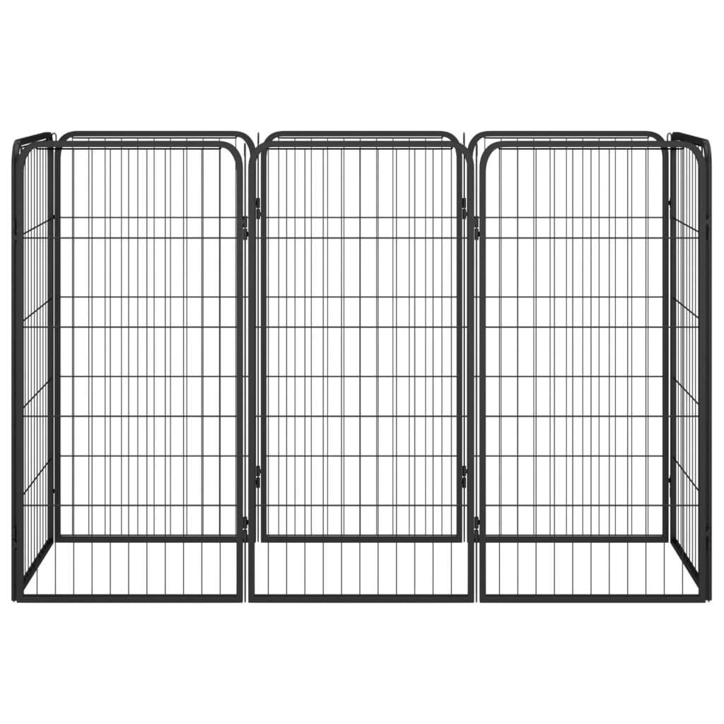 This 8-panel dog playpen gives your pet loads of exercise space while keeping them secure and comfy. Made from sturdy powder-coated steel, it sports a sleek black finish that fits right into any outdoor setting, be it your garden or yard. It looks great and serves its purpose well. Designed for medium to large breeds, it provides a spacious and safe environment for pets to play.