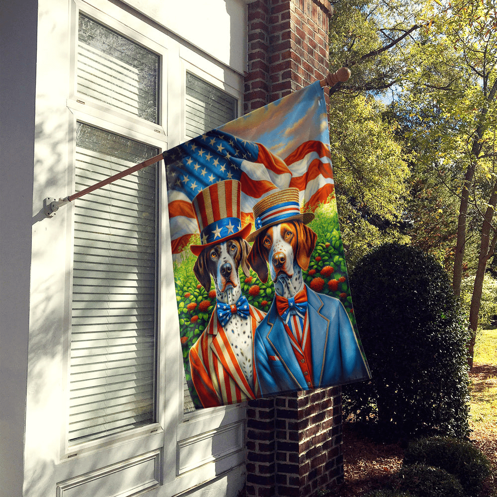 Bandera para casa con diseño de la raza Pointer. Presentamos nuestra bandera decorativa de poliéster resistente con funda para mástil, una adición vibrante que realzará la estética de su hogar. Esta gran bandera decorativa, de aproximadamente 71 x 101 cm, ofrece amplia cobertura y visibilidad. Cada bandera está meticulosamente cosida y confeccionada individualmente, lo que garantiza una pieza única que puede variar ligeramente de tamaño. Es una bandera con funda para mástil, diseñada para adaptarse fácilmente a un mástil decorativo estándar. Tenga en cuenta que el mástil y el soporte no están incluidos y deben adquirirse por separado. Lo que distingue a nuestra bandera es su impresión a doble cara. El diseño se refleja en ambos lados de la tela, lo que permite una visibilidad uniforme desde cualquier ángulo. Impresa a todo color, nuestra bandera luce tonos vibrantes que realmente resaltan. Para garantizar una mayor durabilidad, los tintes se fijan con calor en la tela. Esto garantiza que su bandera se mantenga brillante y cautivadora en diversas condiciones climáticas. ¡Eleve la apariencia de su hogar con nuestra bandera decorativa de poliéster resistente con funda para mástil!