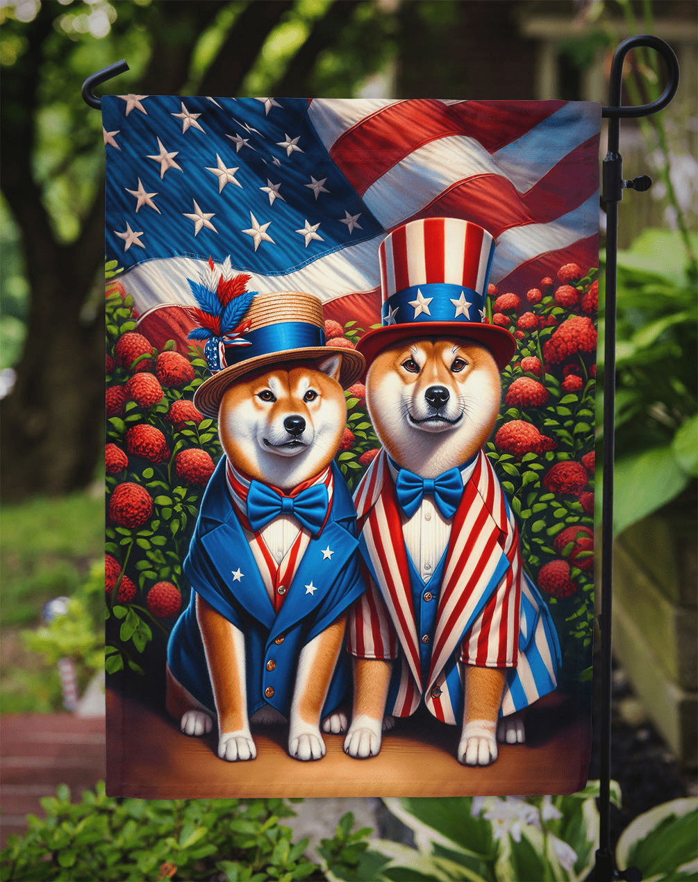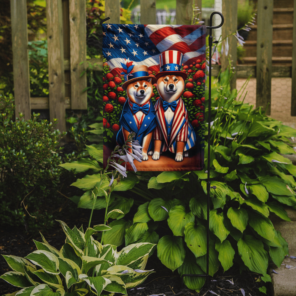 Bandera de jardín con diseño de Shiba Inu. Realza la belleza de tu jardín, patio o jardín con la bandera decorativa Caroline's Treasures, fabricada con orgullo en EE. UU. Fabricada con dos piezas de poliéster grueso de doble cara, esta bandera de jardín de dos capas está diseñada para resistir diversas condiciones climáticas, lo que la hace resistente al agua y a la intemperie. Con texto legible en ambos lados, esta bandera ofrece una experiencia visual encantadora desde cualquier ángulo. Su mayor peso la distingue de otras banderas, garantizando estabilidad y durabilidad incluso con viento, lluvia y nieve. Con unas medidas aproximadas de 29,5 x 39,5 cm, esta bandera te permite personalizar tu decoración exterior. Incluye una funda de 3,8 cm cosida, que permite colocarla fácilmente en cualquier soporte estándar o colgador de porche (se vende por separado). Destaca en tu espacio exterior con la bandera decorativa Caroline's Treasures, una bandera vibrante y de alta calidad que añade color y personalidad a tu entorno. Fabricado con orgullo en EE. UU., es un símbolo de artesanía de calidad y atención al detalle.