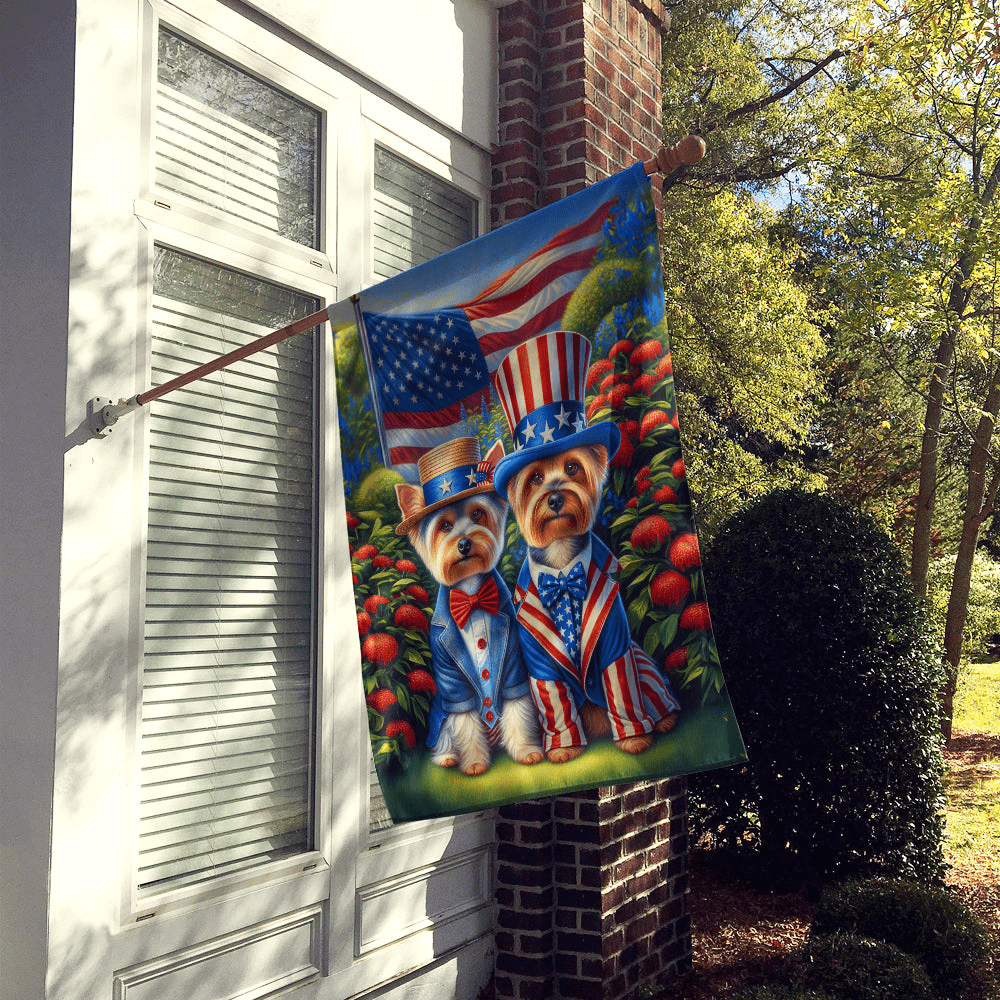 Bandera para casa con diseño específico de la raza Silky Terrier. Presentamos nuestra bandera decorativa de poliéster resistente con funda para mástil, una adición vibrante que realzará la estética de su hogar. Esta gran bandera decorativa, de aproximadamente 71 x 101 cm, ofrece amplia cobertura y visibilidad. Cada bandera está meticulosamente cosida y confeccionada individualmente, lo que garantiza una pieza única cuyo tamaño puede variar ligeramente. Es una bandera con funda para mástil, diseñada para adaptarse fácilmente a un mástil decorativo estándar. Tenga en cuenta que el mástil y el soporte no están incluidos y deben adquirirse por separado. Lo que distingue a nuestra bandera es su impresión a doble cara. El diseño se refleja en ambos lados de la tela, lo que permite una visibilidad uniforme desde cualquier ángulo. Impresa a todo color, nuestra bandera luce tonos vibrantes que realmente resaltan. Para garantizar una mayor durabilidad, los tintes se fijan con calor en la tela. Esto garantiza que su bandera se mantenga brillante y cautivadora en diversas condiciones climáticas. ¡Eleve la apariencia de su hogar con nuestra bandera decorativa de poliéster resistente con funda para mástil!