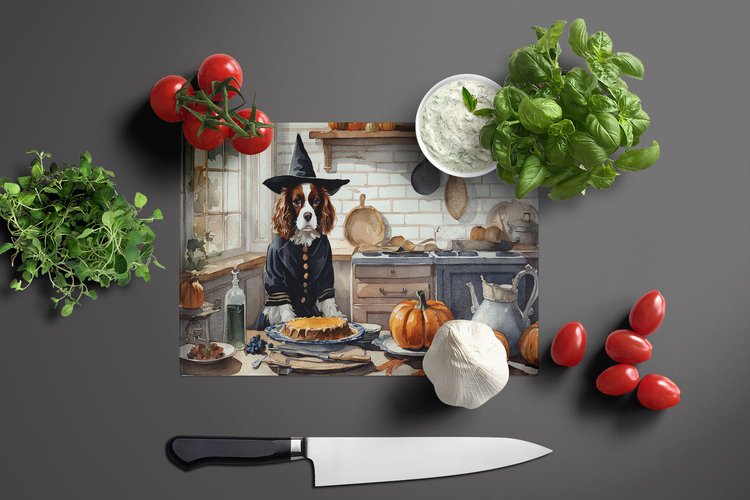 Tabla de cortar de vidrio con calabazas de otoño para Cavalier Spaniel