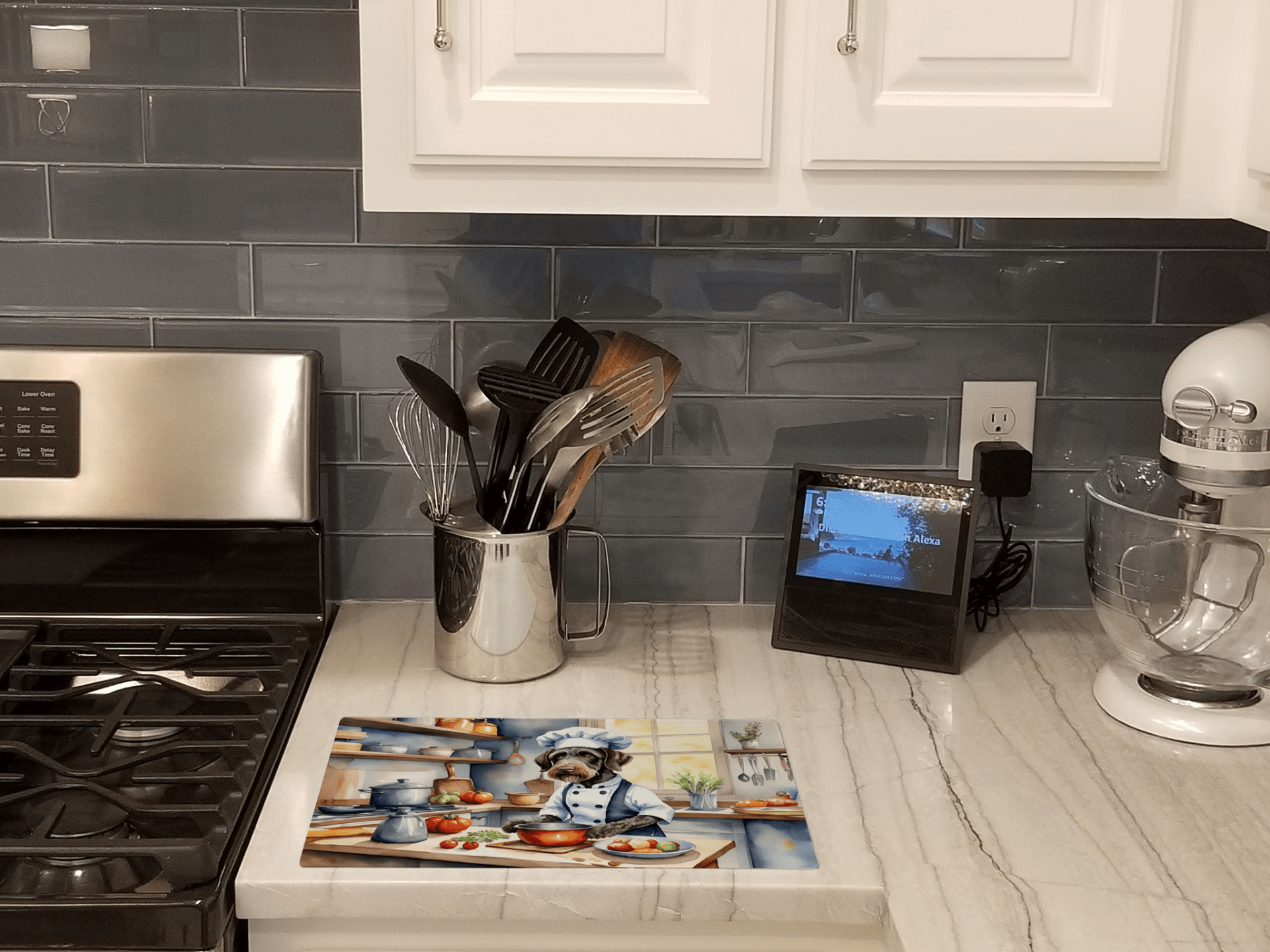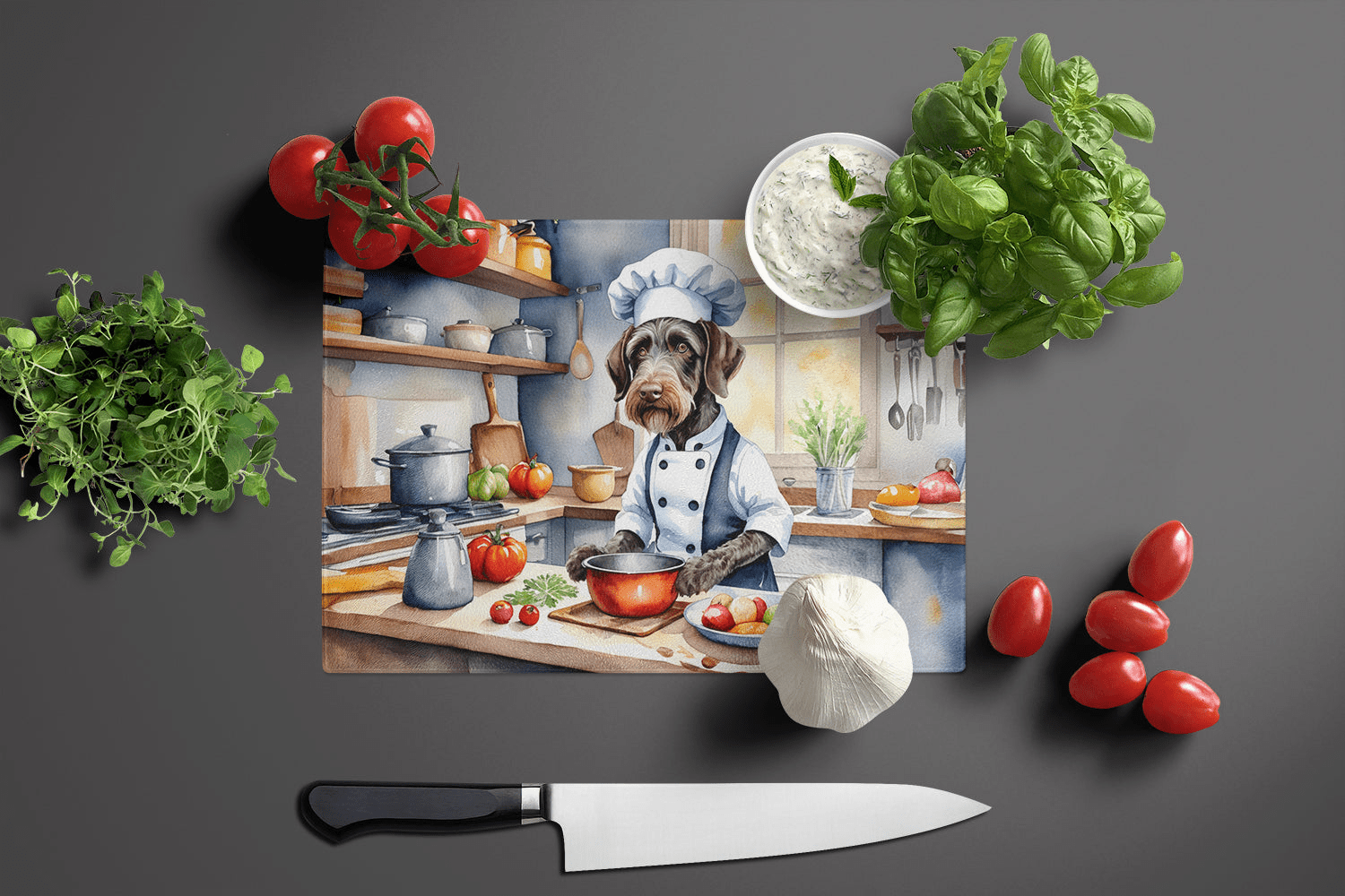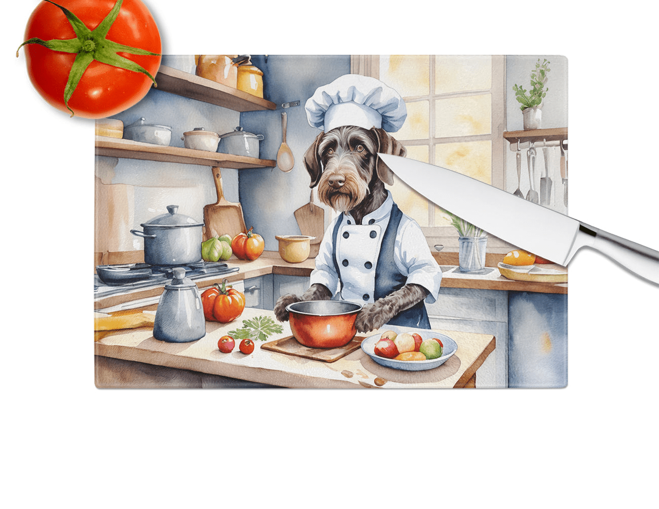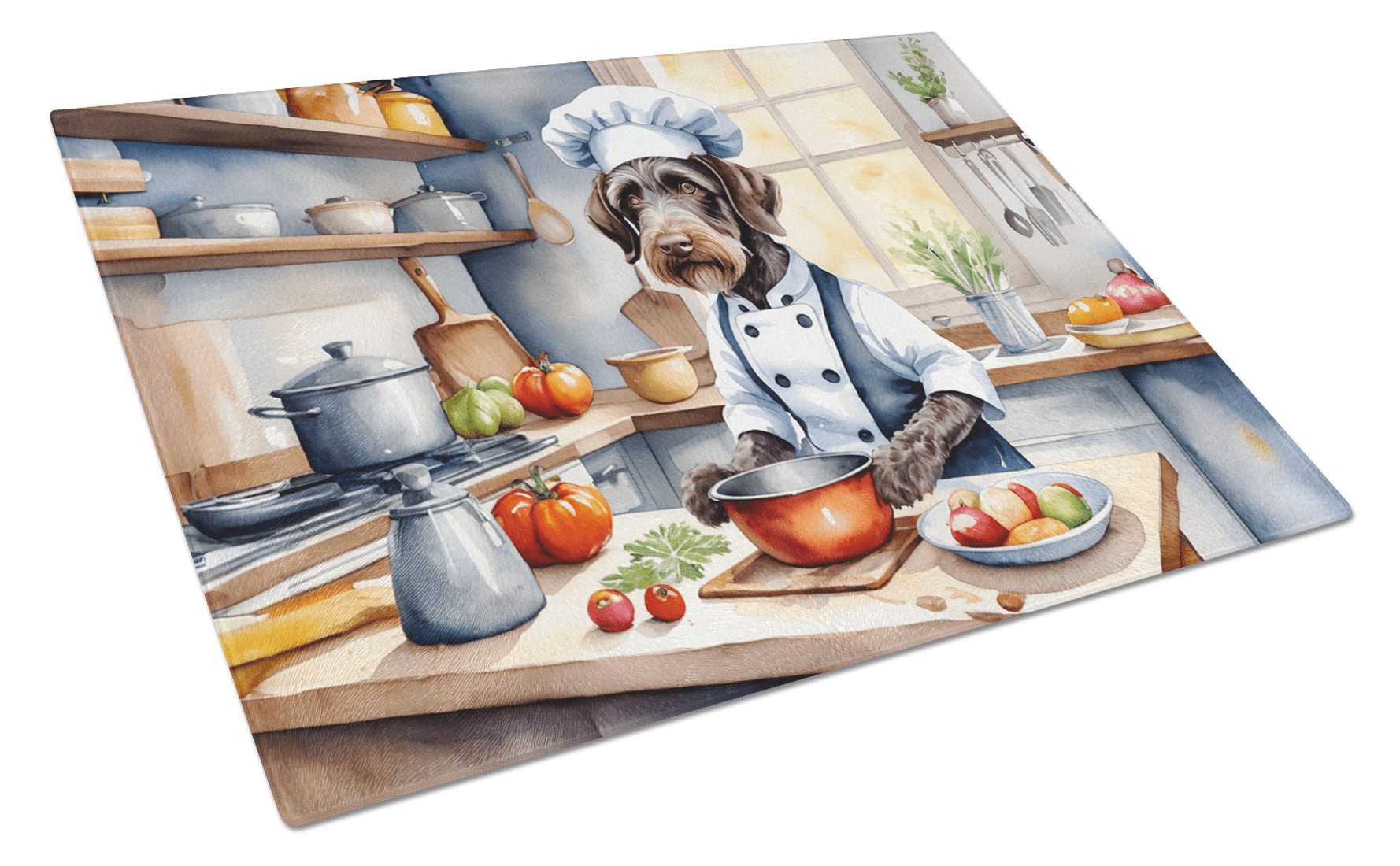 Tabla de cortar de vidrio con ilustraciones específicas de la raza Braco Alemán de Pelo Duro. Dale a tu cocina la vibrante y grande tabla de cortar de vidrio decorativa de Caroline's Treasures. Fabricada con resistente vidrio templado, esta tabla no solo es un accesorio práctico, sino también una colorida obra de arte. Con sus generosas dimensiones de 38 cm de alto y 30 cm de largo, ofrece amplio espacio para todas tus necesidades de corte. Cada pieza exhibe cautivadoras obras de arte de artistas distinguidos, aportando un toque estético a tu cocina. Además de su atractivo diseño, esta tabla de cortar garantiza que tu encimera se mantenga impecable gracias a sus propiedades de resistencia al calor. Diseñada pensando en la comodidad del usuario, cuenta con patas antideslizantes para mayor estabilidad y esquinas redondeadas para mayor seguridad. Su robusta construcción la hace prácticamente irrompible, garantizando así una larga vida útil. La tabla incluye protectores para las patas que la mantienen en su lugar durante el uso. Se recomienda lavar a mano únicamente. Impresa y ensamblada con orgullo en Estados Unidos, esta tabla de cortar ejemplifica la artesanía superior. Con la tabla de cortar de vidrio decorativa de Caroline's Treasures, está invirtiendo en una combinación de funcionalidad y estilo artístico.