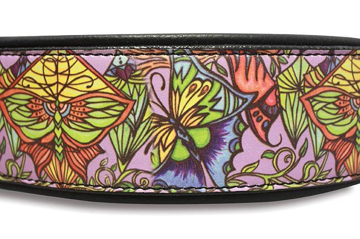 Collar de cuero para perro inspirado en un tatuaje del Santuario de Mariposas de Ángel. Obra original y exclusiva de la artista californiana Jessica Fang.