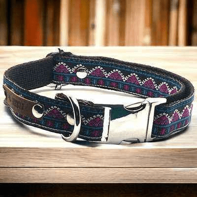 Dale un toque de estilo a tu perro mediano con el collar de algodón personalizado Pawfect Pup de Regal Paws. Este collar cuenta con una hebilla con nombre grabado personalizado, algodón suave y transpirable, patrones únicos y modernos, y un diseño duradero. ¡Paseos elegantes y seguros con este collar!