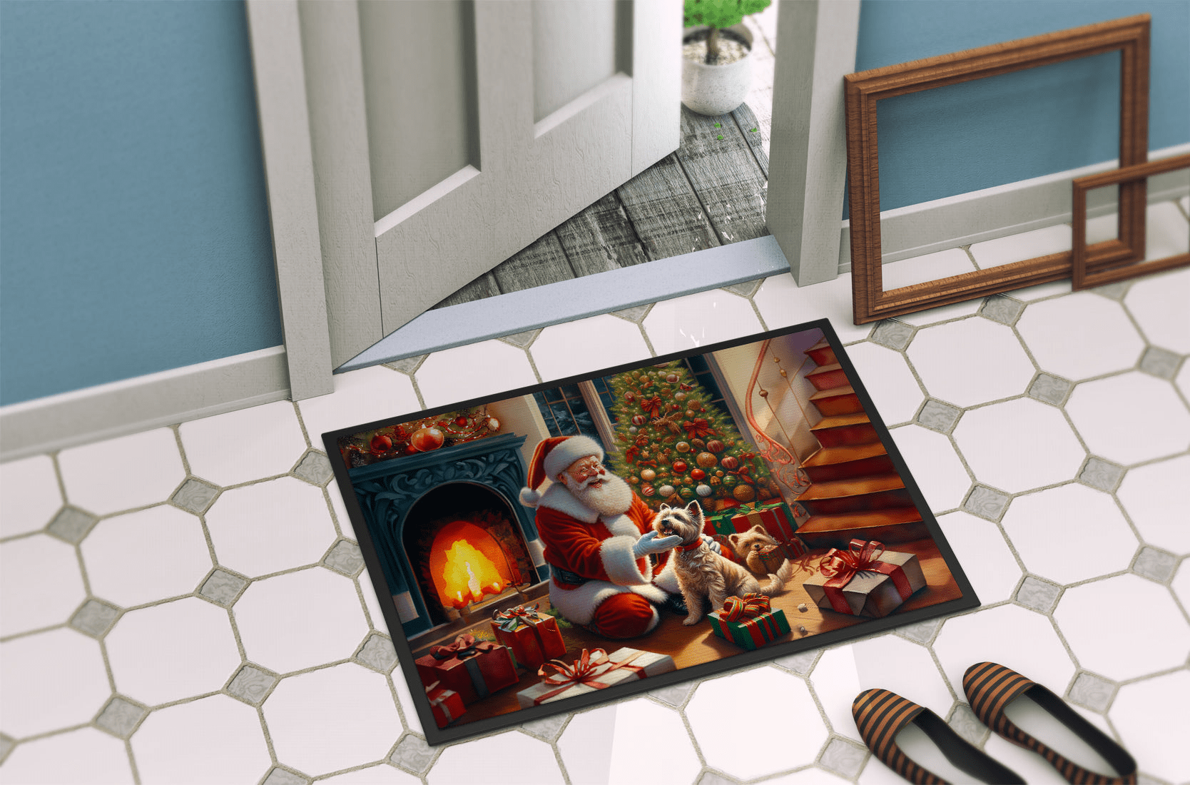 Felpudo con diseño de la raza Cairn Terrier. Celebra la Navidad con este felpudo navideño. Recibe a tus invitados con estilo con nuestro felpudo con diseño, diseñado para resistir prácticamente cualquier condición climática. Este felpudo, de aproximadamente 45 x 68 cm, está unido con una resistente cinta adhesiva negra. Su capa superior, de fieltro de poliéster, está teñida con la llamativa imagen que se ve en el felpudo. Las capas inferiores le proporcionan estabilidad, mientras que su base de goma está estampada para evitar resbalones y garantizar la seguridad. Nuestro felpudo funciona de maravilla tanto para interiores como para exteriores. Para limpiarlo, simplemente lávalo con agua a presión o con una hidrolavadora; no necesitas limpiadores que produzcan espuma. Evita frotar con un cepillo; en su lugar, opta por la función de aspiración en el suelo. Diseñado, fabricado e impreso en EE. UU., este felpudo es el complemento perfecto para tu porche, cocina exterior, entrada o cualquier espacio interior. Su diseño único lo convierte en una encantadora alfombra decorativa que da la bienvenida a tus invitados y añade un toque de estilo a la decoración de tu hogar.