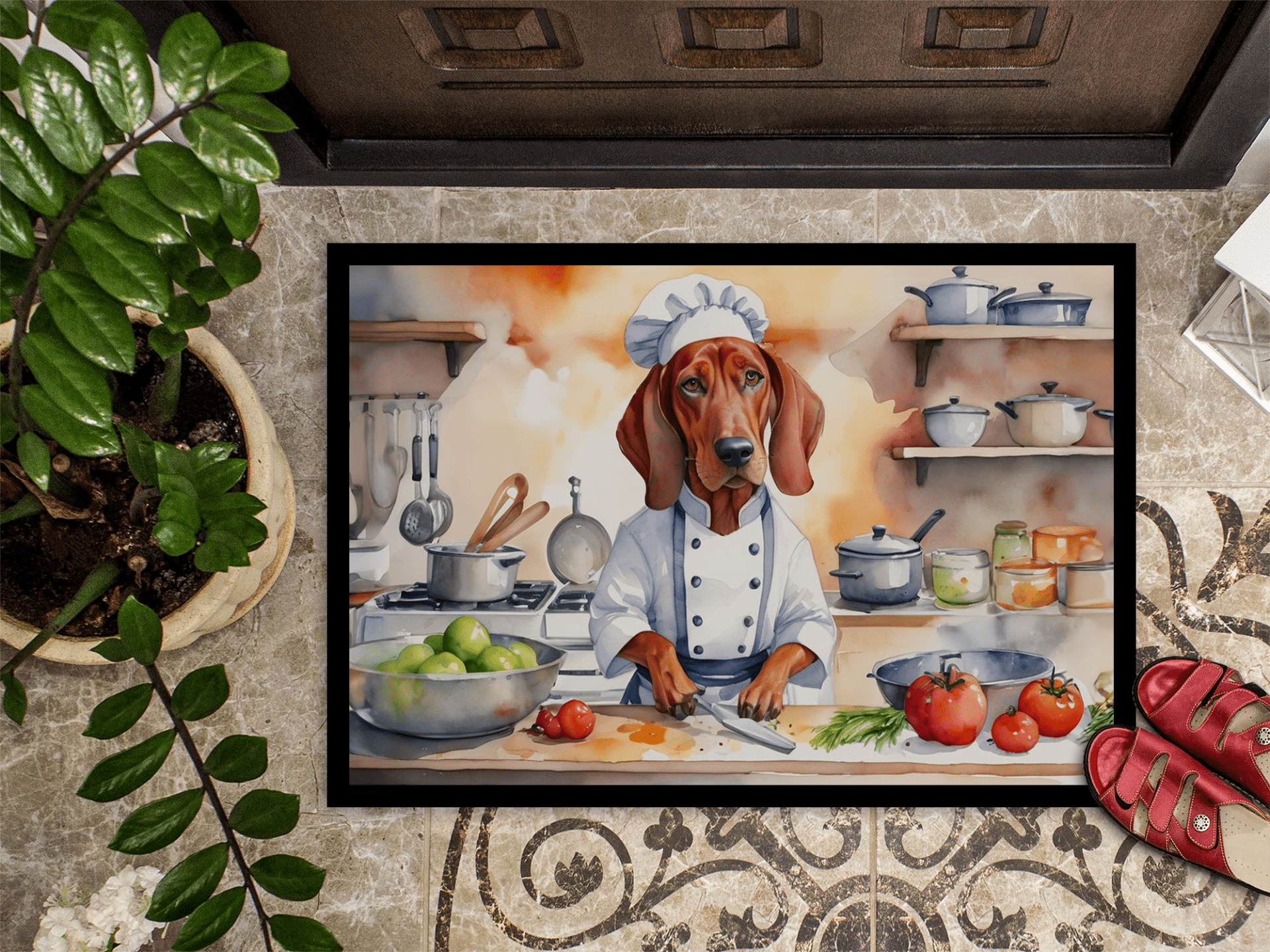 Felpudo con la imagen específica de la raza Redbone Coonhound. Reciba a sus invitados con estilo con nuestro felpudo Artwork, diseñado para resistir prácticamente cualquier condición climática. Este felpudo, de aproximadamente 45 x 68 cm, está unido con una resistente cinta adhesiva negra. Su capa superior, de fieltro de poliéster, está teñida con la llamativa imagen que se ve en el felpudo. Las capas inferiores le proporcionan estabilidad, mientras que su base de goma está estampada para evitar resbalones y garantizar la seguridad. Nuestro felpudo funciona de maravilla tanto para interiores como para exteriores. Para limpiarlo, simplemente lávelo con agua a presión o con una hidrolavadora; no necesita limpiadores que produzcan espuma. Evite frotar con un cepillo; en su lugar, opte por la función de aspiración en el suelo. Diseñado, fabricado e impreso en EE. UU., este felpudo es el complemento perfecto para su porche, cocina exterior, entrada o cualquier espacio interior. Su diseño único lo convierte en una encantadora alfombra decorativa que da la bienvenida a sus invitados y añade un toque de estilo a la decoración de su hogar.