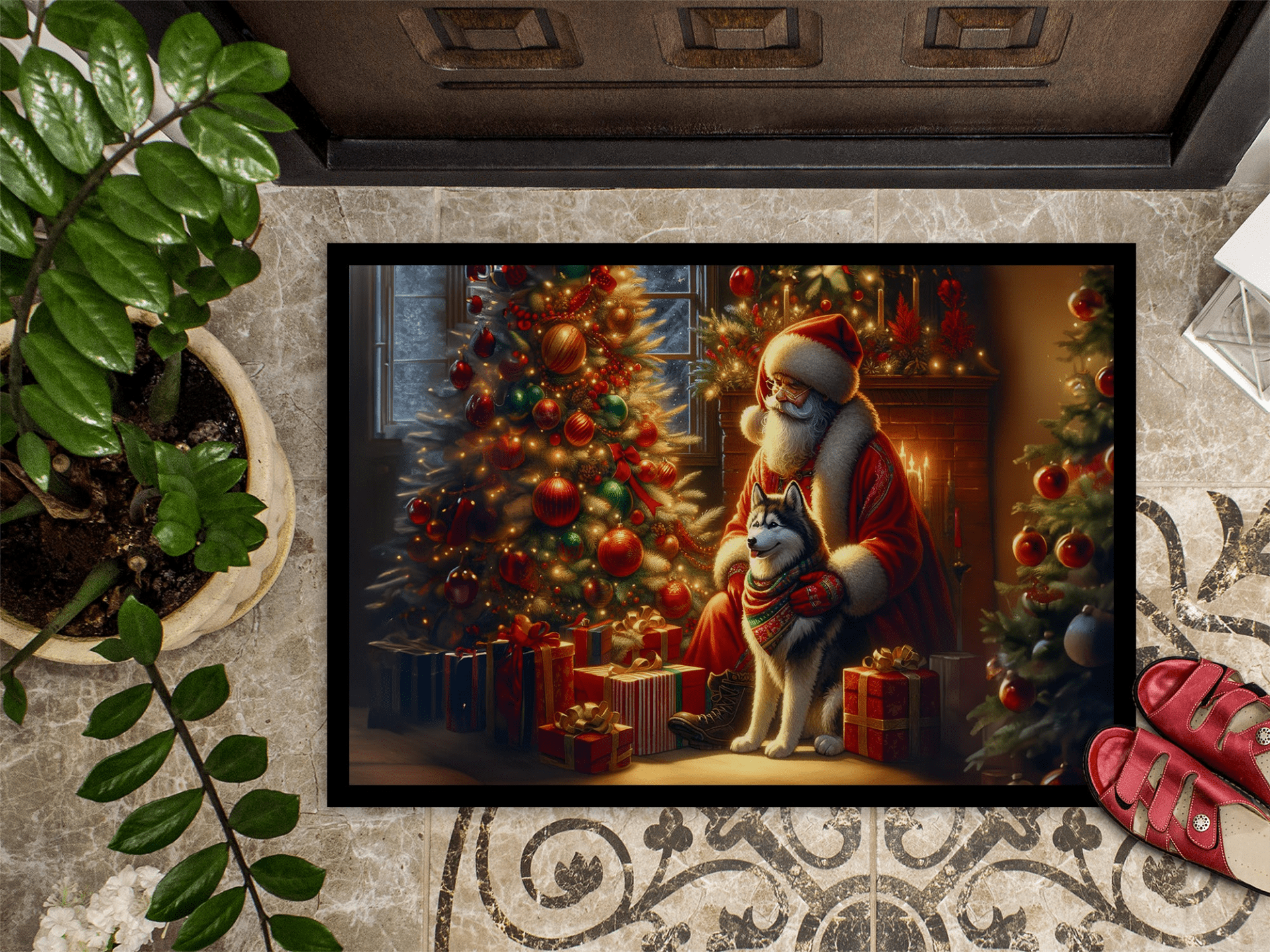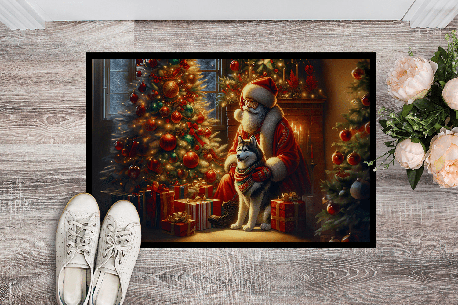 Felpudo con diseño de la raza Husky Siberiano. Celebra la Navidad con este felpudo navideño. Recibe a tus invitados con estilo con nuestro felpudo con diseño, diseñado para resistir prácticamente cualquier condición climática. Este felpudo, de aproximadamente 45 x 68 cm, está unido con una resistente cinta adhesiva negra. Su capa superior, de fieltro de poliéster, está teñida con la llamativa imagen que se ve en el felpudo. Las capas inferiores le proporcionan estabilidad, mientras que su base de goma está estampada para evitar resbalones y garantizar la seguridad. Nuestro felpudo funciona de maravilla tanto para interiores como para exteriores. Para limpiarlo, simplemente lávalo con agua a presión o con una hidrolavadora; no necesitas limpiadores que produzcan espuma. Evita frotar con un cepillo; en su lugar, opta por la función de aspiración en el suelo. Diseñado, fabricado e impreso en EE. UU., este felpudo es el complemento perfecto para tu porche, cocina exterior, entrada o cualquier espacio interior. Su diseño único lo convierte en una encantadora alfombra decorativa que da la bienvenida a tus invitados y añade un toque de estilo a la decoración de tu hogar.