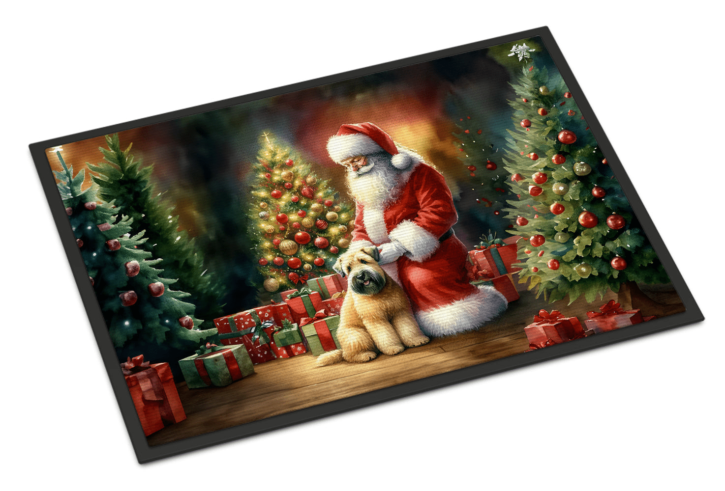 Felpudo con la imagen de un Wheaten Terrier. Celebra la Navidad con este felpudo navideño. Recibe a tus invitados con estilo con nuestro felpudo con ilustraciones, diseñado para resistir prácticamente cualquier condición climática. Este felpudo, de aproximadamente 45 x 68 cm, está unido con una resistente cinta adhesiva negra. Su capa superior, de fieltro de poliéster, está teñida con la llamativa imagen que se ve en el felpudo. Las capas inferiores le proporcionan estabilidad, mientras que su base de goma está estampada para evitar resbalones y garantizar la seguridad. Nuestro felpudo funciona de maravilla tanto para interiores como para exteriores. Para limpiarlo, simplemente lávalo con agua a presión o con una hidrolavadora; no necesitas limpiadores que produzcan espuma. Evita frotar con un cepillo; en su lugar, opta por la aspiradora. Diseñado, fabricado e impreso en EE. UU., este felpudo es el complemento perfecto para tu porche, cocina exterior, entrada o cualquier espacio interior. Su diseño único lo convierte en una encantadora alfombra decorativa que da la bienvenida a tus invitados y añade un toque de estilo a la decoración de tu hogar.