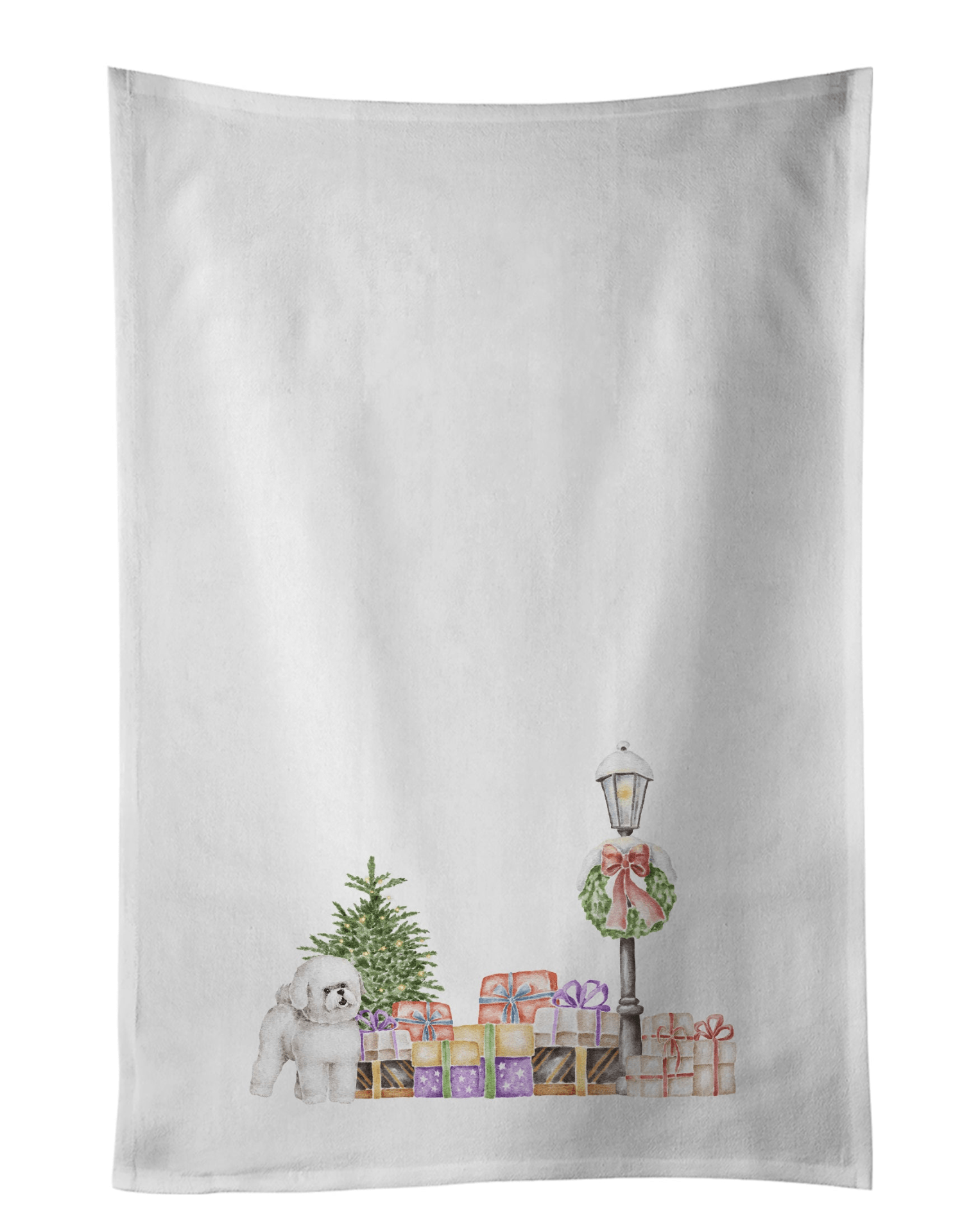 Juego de 2 paños de cocina con ilustraciones de la raza Bichón Frisé. Celebra la Navidad con estos paños de cocina navideños de algodón. Este juego de 2 paños de cocina pertenece a la colección Christmas Wonderland de Caroline's Treasures. Dale un toque especial a la decoración de tu cocina con el juego de paños de cocina blancos decorativos de Caroline's Treasures. Este juego de dos paños de cocina luce hermosas ilustraciones de uno de nuestros talentosos artistas, lo que los hace prácticos y visualmente atractivos. Estos paños están confeccionados en 100 % algodón, lo que ofrece una excelente absorción y durabilidad, lo que los hace ideales para cualquier tarea en la cocina. Cada paño blanco mide 48 x 71 cm, lo que proporciona una amplia cobertura para secar platos o limpiar derrames. Su característica más destacada es el diseño a todo color impreso en cada uno. Pueden ser un toque vibrante en tu cocina, convirtiendo un artículo funcional en una encantadora pieza de decoración. En cuanto al cuidado, estos paños se pueden lavar a máquina con agua fría y secar a baja temperatura. Recuerda usar siempre un paño de planchado al planchar el diseño y evitar usar lejía en el paño decorado. El juego de toallas de cocina blancas decorativas es un regalo ideal o un complemento elegante para tu cocina. Estas toallas de cocina de algodón pertenecen a la categoría de productos Caroline's Treasures Dogs.