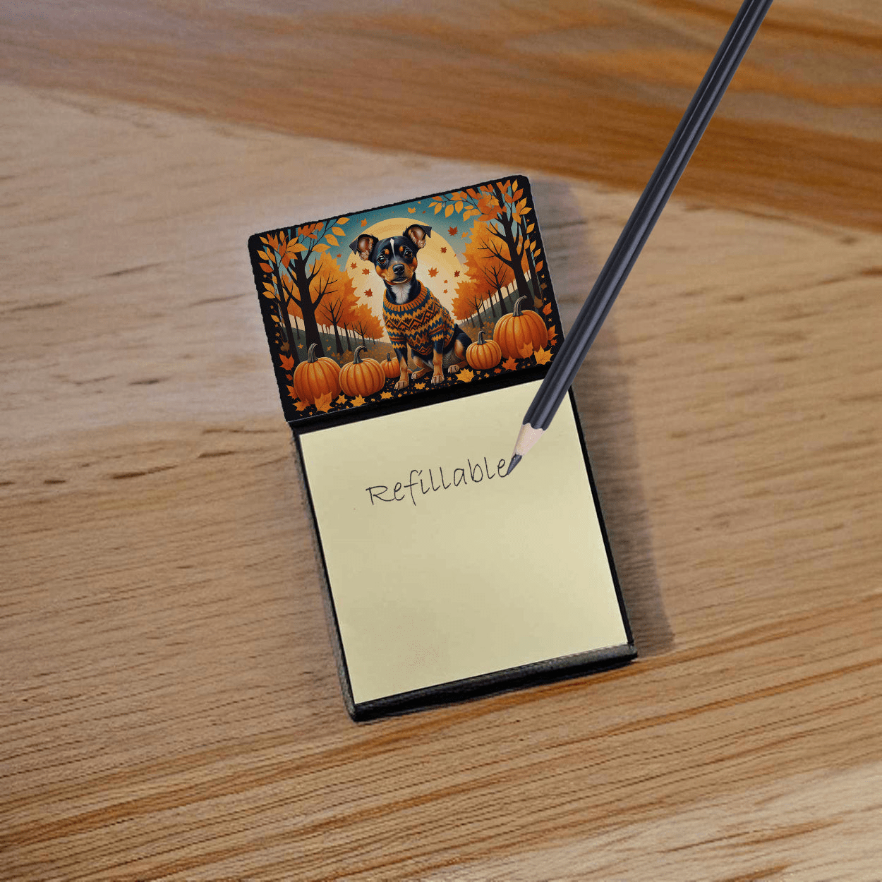 Porta notas adhesivas de otoño con diseño de pinscher miniatura