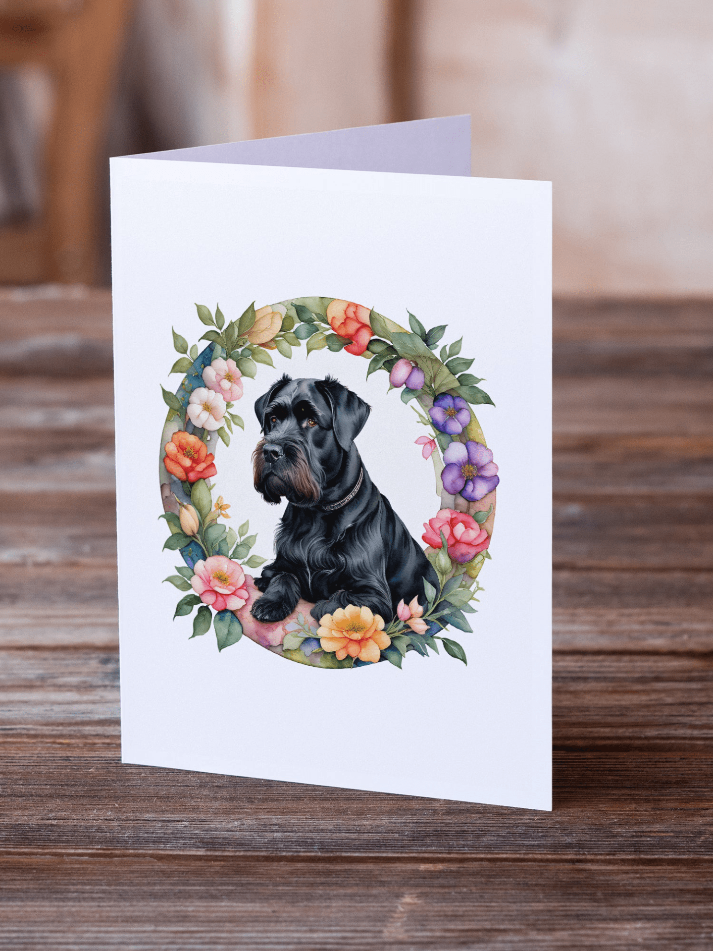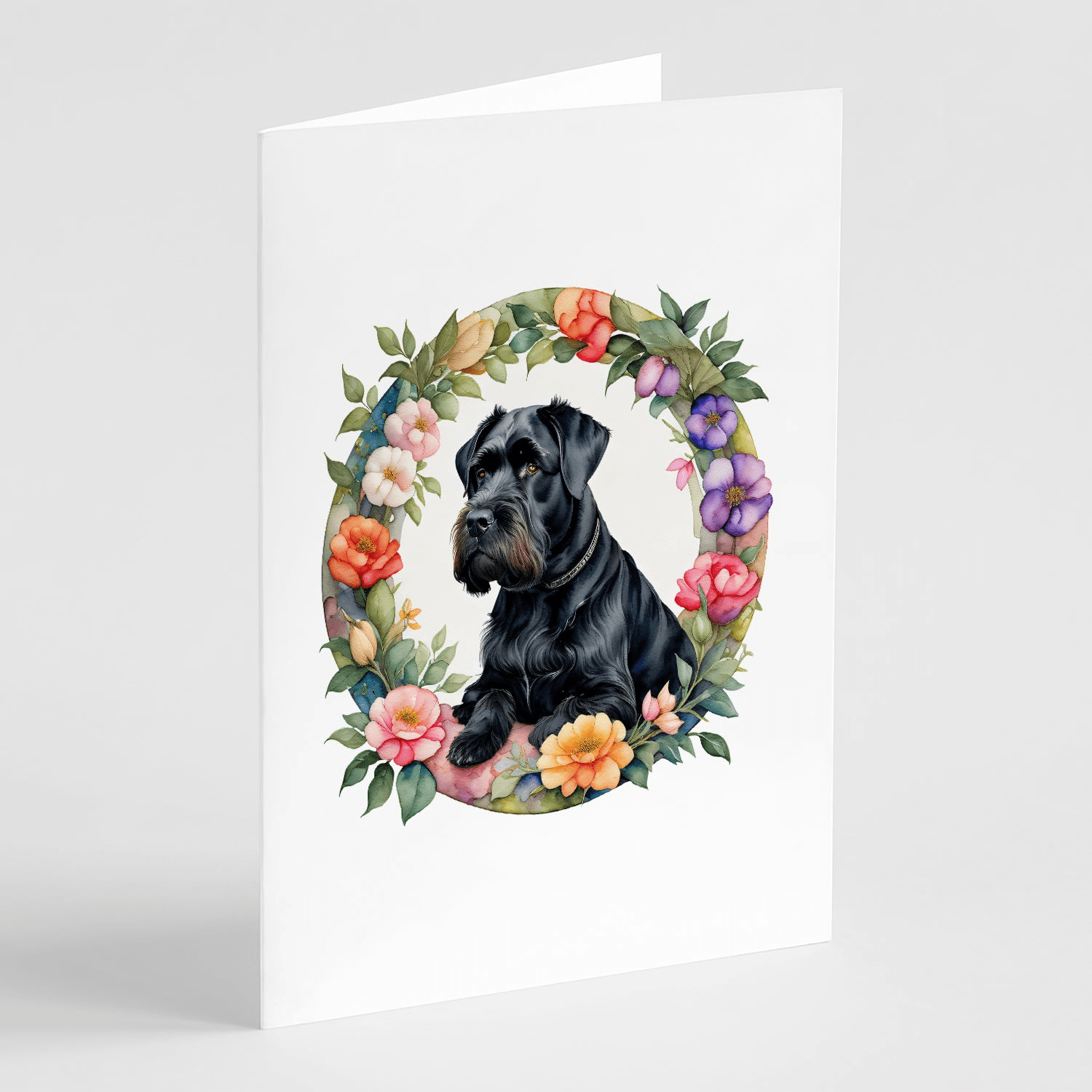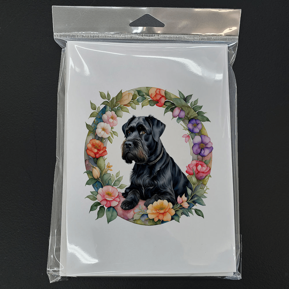 Paquete de 8 tarjetas de felicitación con Schnauzer gigante y flores