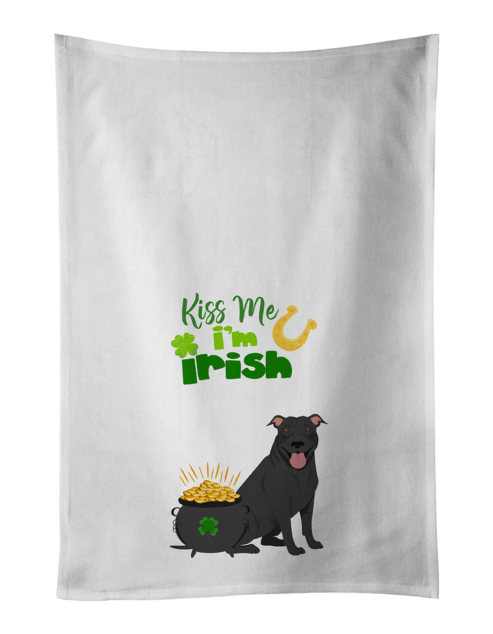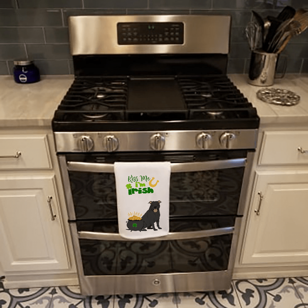 Juego de 2 paños de cocina para el Día de San Patricio con diseño de Pitbull Terrier negro