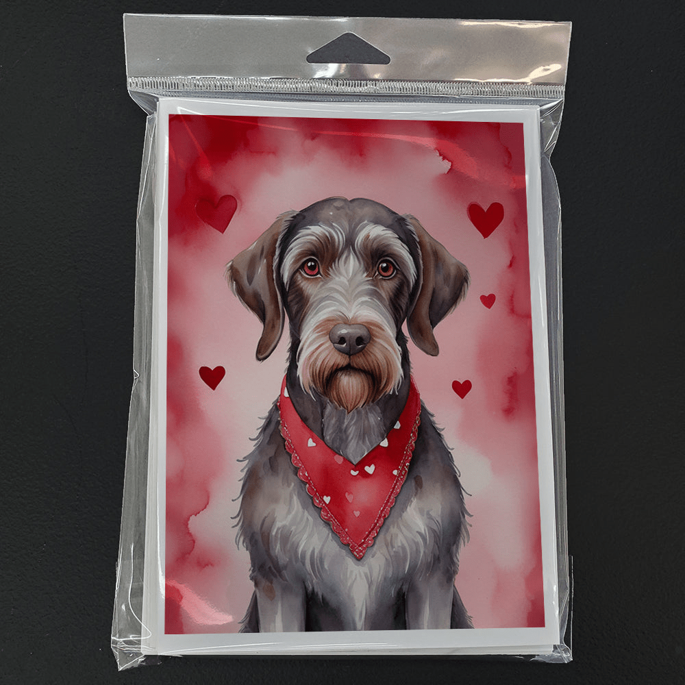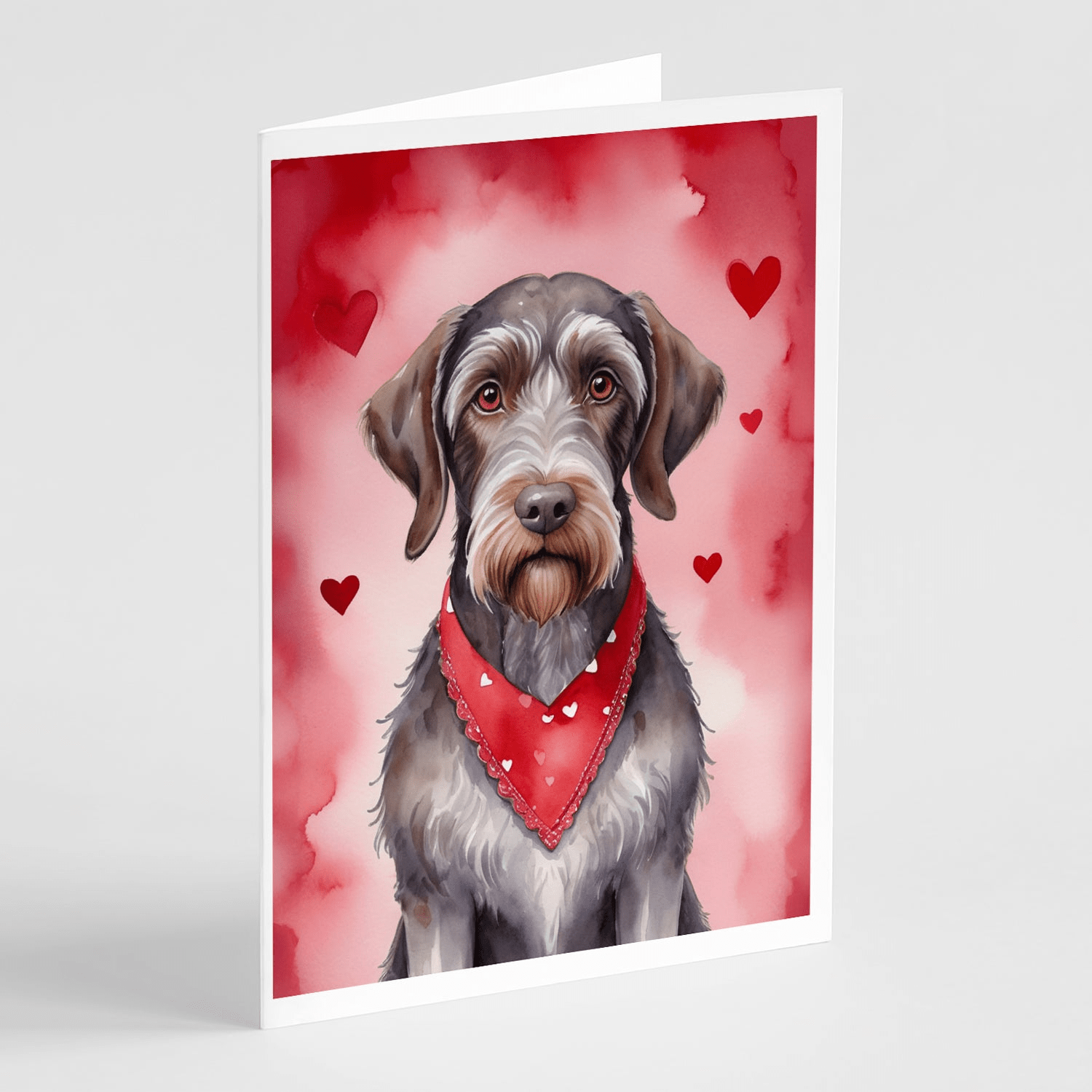 Paquete de 8 tarjetas de felicitación de San Valentín para Braco Alemán de Pelo Duro