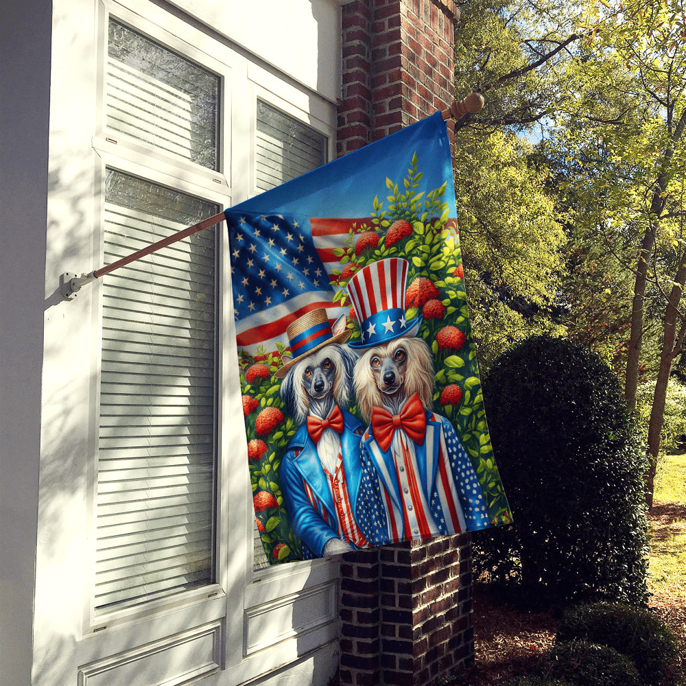 Bandera para casa con diseño específico de la raza Crestado Chino. Presentamos nuestra bandera decorativa de poliéster resistente con asta y funda, una adición vibrante que realzará la estética de su hogar. Esta gran bandera decorativa, de aproximadamente 71 x 101 cm, ofrece amplia cobertura y visibilidad. Cada bandera está meticulosamente cosida y confeccionada individualmente, lo que garantiza una pieza única cuyo tamaño puede variar ligeramente. Es una bandera con asta y funda, diseñada para adaptarse fácilmente a un asta decorativo estándar. Tenga en cuenta que el asta y el soporte no están incluidos y deben adquirirse por separado. Lo que distingue a nuestra bandera es su impresión a doble cara. El diseño se refleja en ambos lados de la tela, lo que permite una visibilidad uniforme desde cualquier ángulo. Impresa a todo color, nuestra bandera luce tonos vibrantes que realmente resaltan. Para garantizar una durabilidad duradera, los tintes se fijan con calor en la tela. Esto garantiza que su bandera se mantenga brillante y cautivadora en diversas condiciones climáticas. ¡Eleve la apariencia de su hogar con nuestra bandera decorativa de poliéster resistente con asta y funda, tamaño casa!