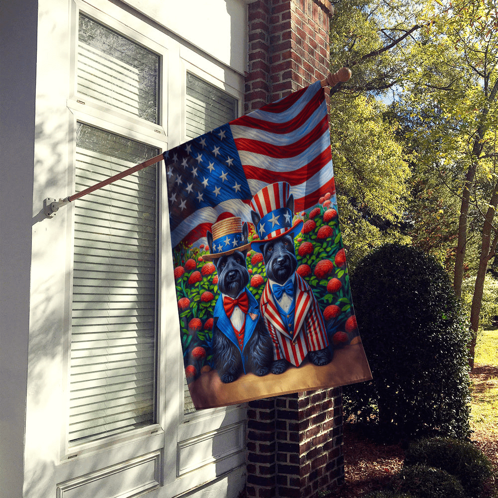 Bandera para casa con diseño específico de la raza Scottish Terrier. Presentamos nuestra bandera decorativa de poliéster resistente con funda para mástil, una adición vibrante que realzará la estética de su hogar. Esta gran bandera decorativa, de aproximadamente 71 x 101 cm, ofrece amplia cobertura y visibilidad. Cada bandera está meticulosamente cosida y confeccionada individualmente, lo que garantiza una pieza única cuyo tamaño puede variar ligeramente. Es una bandera con funda para mástil, diseñada para adaptarse fácilmente a un mástil decorativo estándar. Tenga en cuenta que el mástil y el soporte no están incluidos y deben adquirirse por separado. Lo que distingue a nuestra bandera es su impresión a doble cara. El diseño se refleja en ambos lados de la tela, lo que permite una visibilidad uniforme desde cualquier ángulo. Impresa a todo color, nuestra bandera luce tonos vibrantes que realmente resaltan. Para garantizar una mayor durabilidad, los tintes se fijan con calor en la tela. Esto garantiza que su bandera se mantenga brillante y cautivadora en diversas condiciones climáticas. ¡Eleve la apariencia de su hogar con nuestra bandera decorativa de poliéster resistente con funda para mástil!