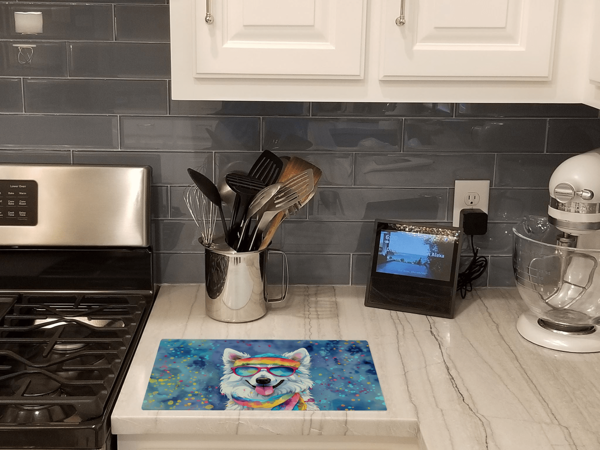 Tabla de cortar de vidrio con ilustraciones de la raza esquimal americana. Dale a tu cocina la vibrante y grande tabla de cortar de vidrio decorativa de Caroline's Treasures. Fabricada en resistente vidrio templado, esta tabla no solo es un accesorio práctico, sino también una colorida obra de arte. Con sus generosas dimensiones de 38 cm de alto y 30 cm de largo, ofrece amplio espacio para todas tus necesidades de corte. Cada pieza exhibe cautivadoras obras de arte de artistas distinguidos, aportando un toque estético a tu cocina. Además de su atractivo diseño, esta tabla de cortar garantiza que tu encimera se mantenga impecable gracias a sus propiedades de resistencia al calor. Diseñada pensando en la comodidad del usuario, cuenta con patas antideslizantes para mayor estabilidad y esquinas redondeadas para mayor seguridad. Su robusta construcción la hace prácticamente irrompible, garantizando así una larga vida útil. La tabla incluye protectores para las patas que la mantienen en su lugar durante el uso. Se recomienda lavar a mano únicamente. Impresa y ensamblada con orgullo en Estados Unidos, esta tabla de cortar ejemplifica la artesanía superior. Con la tabla de cortar de vidrio decorativa de Caroline's Treasures, está invirtiendo en una combinación de funcionalidad y estilo artístico.