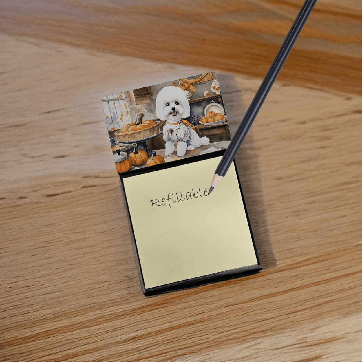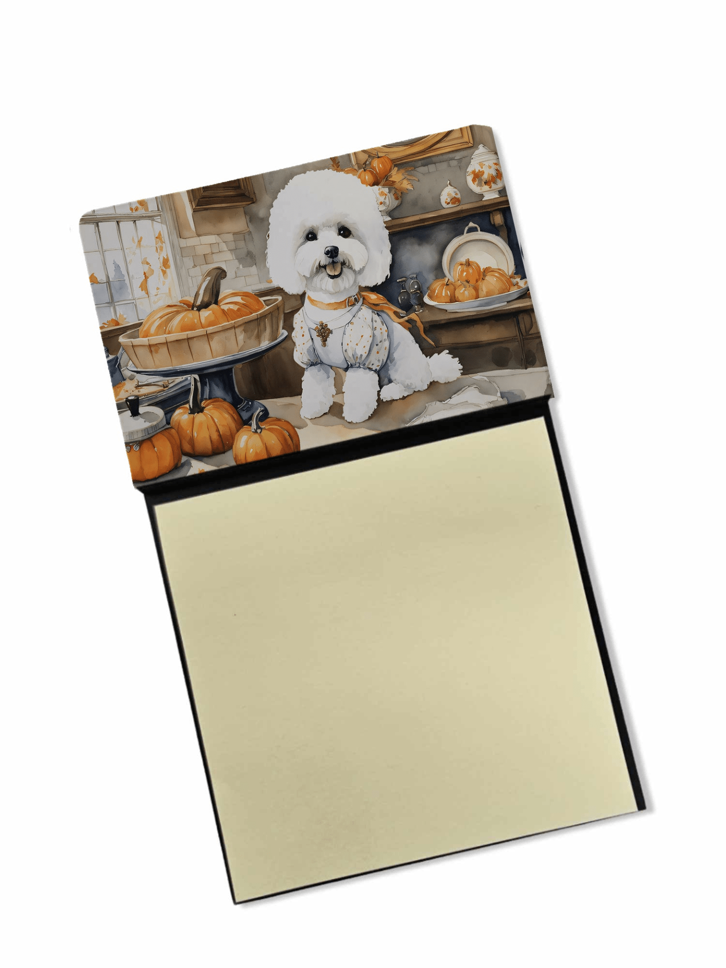 Portanotas adhesivas con calabazas de cocina otoñal para bichón frisé