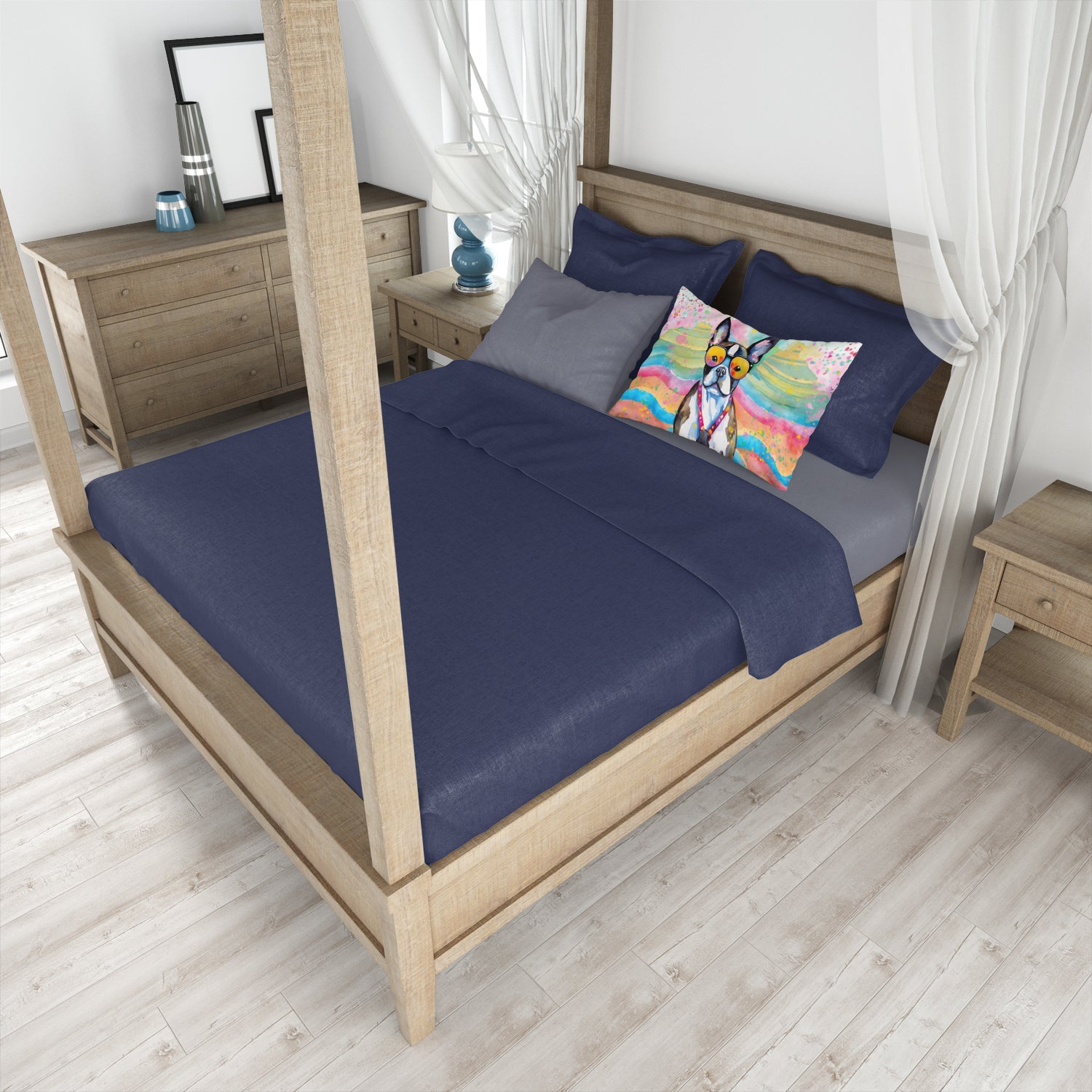 Funda de almohada estándar Boston Terrier Hippie Dawg