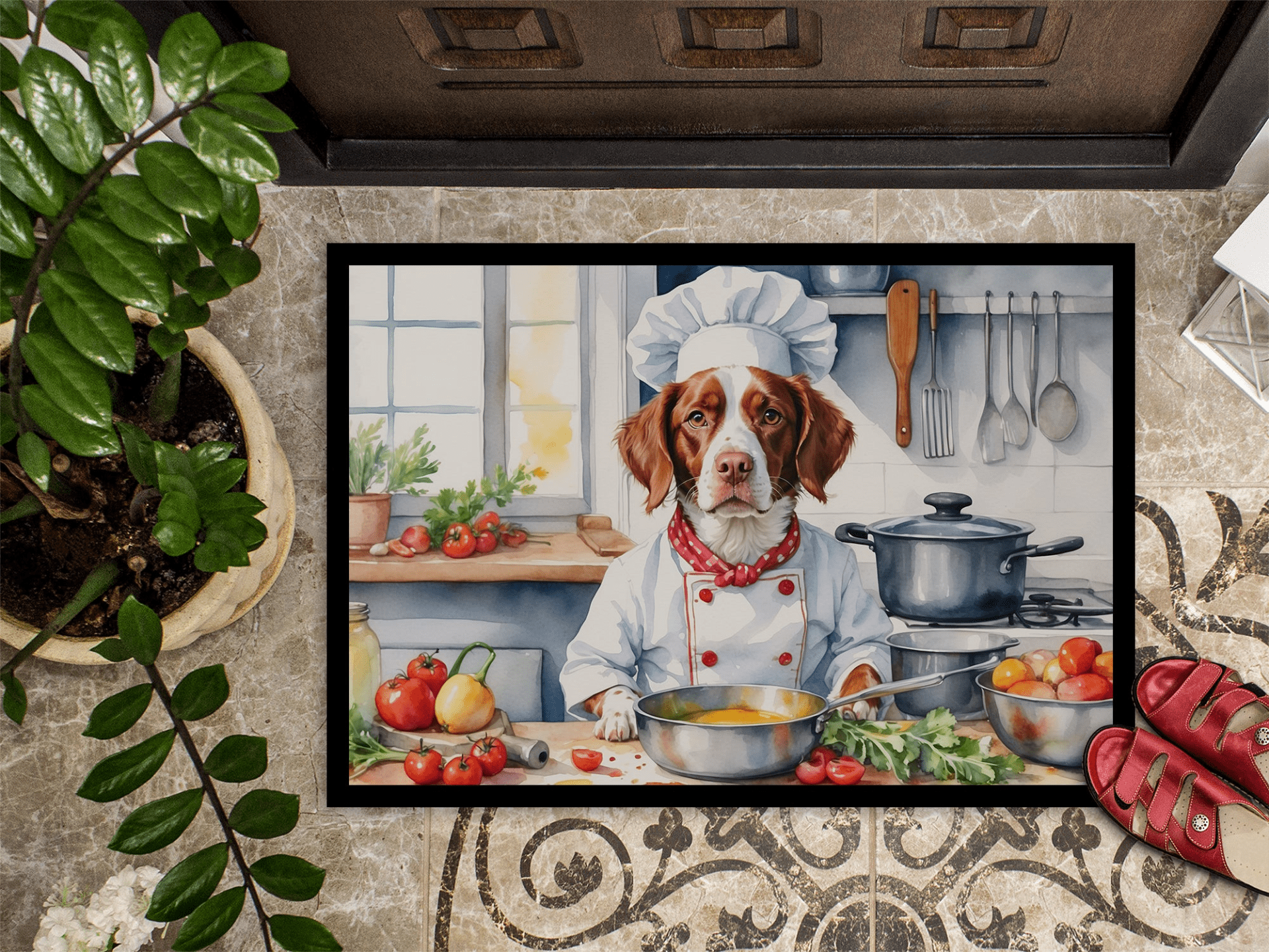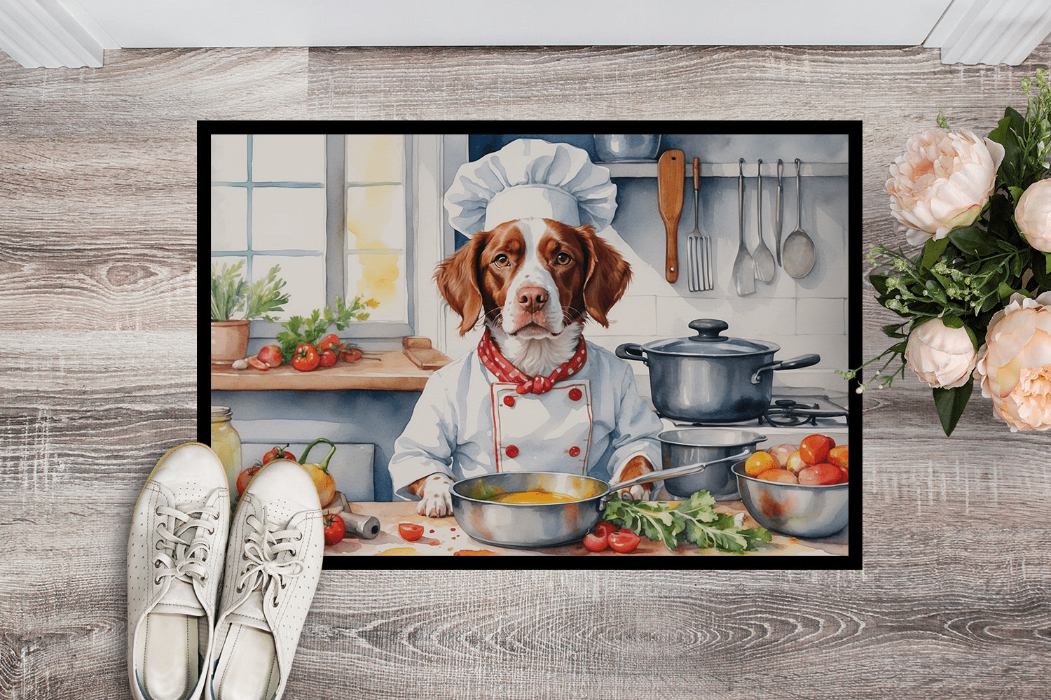 Felpudo con diseño de Spaniel Británico. Reciba a sus invitados con estilo con nuestro felpudo con diseño, diseñado para resistir prácticamente cualquier condición climática. Este felpudo, de aproximadamente 45 x 68 cm, está unido con una resistente cinta adhesiva negra. Su capa superior, de fieltro de poliéster, está teñida con la llamativa imagen que se ve en el felpudo. Las capas inferiores le proporcionan estabilidad, mientras que su base de goma está estampada para evitar resbalones y garantizar la seguridad. Nuestro felpudo funciona de maravilla tanto para interiores como para exteriores. Para limpiarlo, simplemente lávelo con agua a presión o con una hidrolavadora; no necesita limpiadores que produzcan espuma. Evite frotar con un cepillo; en su lugar, opte por la función de aspiración en el suelo. Diseñado, fabricado e impreso en EE. UU., este felpudo es el complemento perfecto para su porche, cocina exterior, entrada o cualquier espacio interior. Su diseño único lo convierte en una encantadora alfombra decorativa que da la bienvenida a sus invitados y añade un toque de estilo a la decoración de su hogar.
