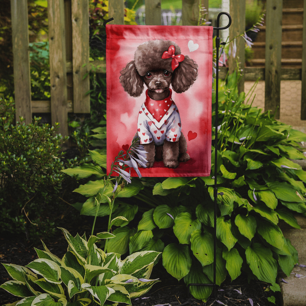 Bandera de jardín con diseño de caniche de la raza. Celebra San Valentín con esta bandera. Realza la belleza de tu jardín, patio o jardín con la bandera decorativa Caroline's Treasures, fabricada con orgullo en EE. UU. Fabricada con dos piezas de poliéster grueso de doble cara, esta bandera de jardín de dos capas está diseñada para resistir diversas condiciones climáticas, lo que la hace resistente al agua y a la intemperie. Con texto legible en ambos lados, esta bandera ofrece una experiencia visual encantadora desde cualquier ángulo. Su mayor peso la distingue de otras banderas, garantizando estabilidad y durabilidad incluso con viento, lluvia y nieve. Con unas medidas aproximadas de 29,5 x 39,5 cm, esta bandera te permite personalizar tu decoración exterior. Incluye una funda de 3,8 cm cosida, que permite colocarla fácilmente en cualquier soporte estándar o colgador de porche (se vende por separado). Destaca en tu espacio exterior con la bandera decorativa Caroline's Treasures, una bandera vibrante y de alta calidad que añade color y personalidad a tu entorno. Fabricado con orgullo en EE. UU., es un símbolo de artesanía de calidad y atención al detalle.