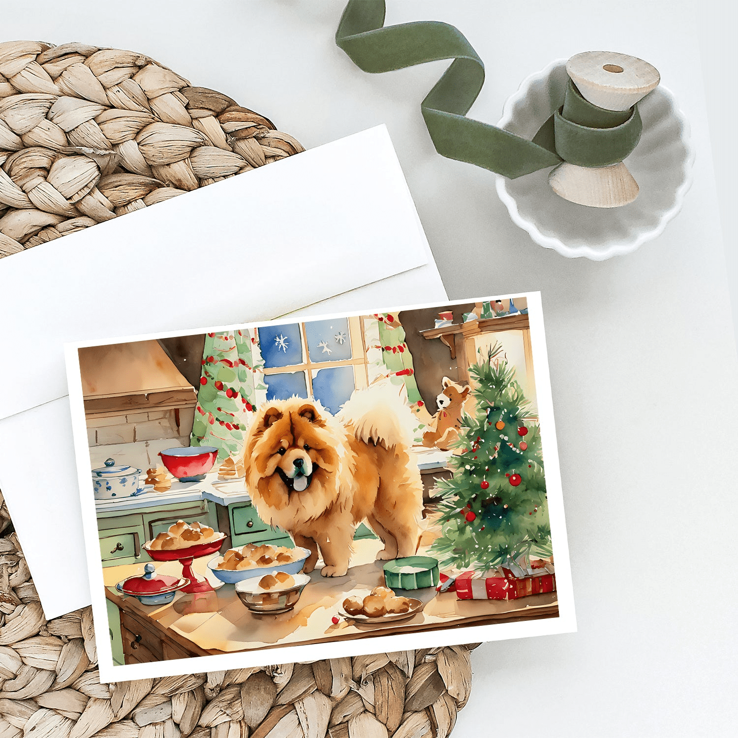 Paquete de 8 tarjetas de felicitación navideñas de galletas Chow Chow
