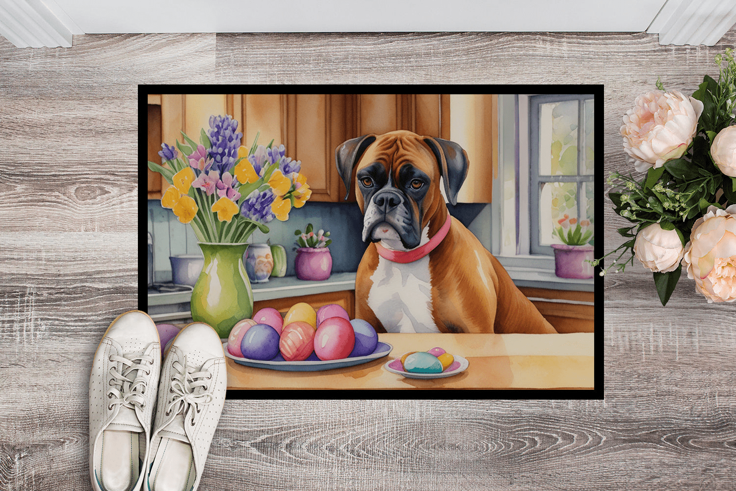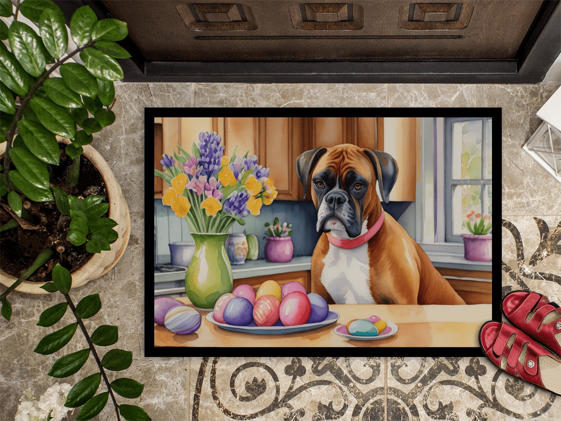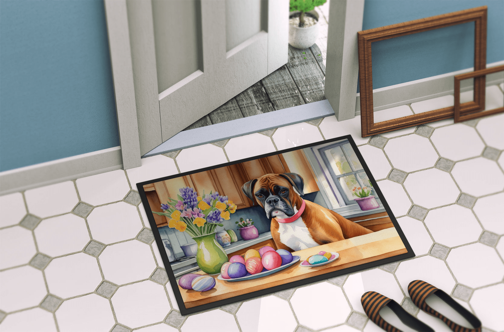 Felpudo con diseño de la raza Boxer. Celebra la Pascua con este felpudo. Recibe a tus invitados con estilo con nuestro felpudo con diseño, diseñado para resistir prácticamente cualquier condición climática. Este felpudo, de aproximadamente 45 x 68 cm, está unido con una resistente cinta adhesiva negra. Su capa superior, de fieltro de poliéster, está teñida con la llamativa imagen que se ve en el felpudo. Las capas inferiores le proporcionan estabilidad, mientras que su base de goma está estampada para evitar resbalones y garantizar la seguridad. Nuestro felpudo funciona de maravilla tanto para interiores como para exteriores. Para limpiarlo, simplemente lávalo con agua a presión o con una hidrolavadora; no necesitas limpiadores que produzcan espuma. Evita frotar con un cepillo; en su lugar, opta por la aspiradora. Diseñado, fabricado e impreso en EE. UU., este felpudo es el complemento perfecto para tu porche, cocina exterior, entrada o cualquier espacio interior. Su diseño único lo convierte en una encantadora alfombra decorativa que da la bienvenida a tus invitados y añade un toque de estilo a la decoración de tu hogar.