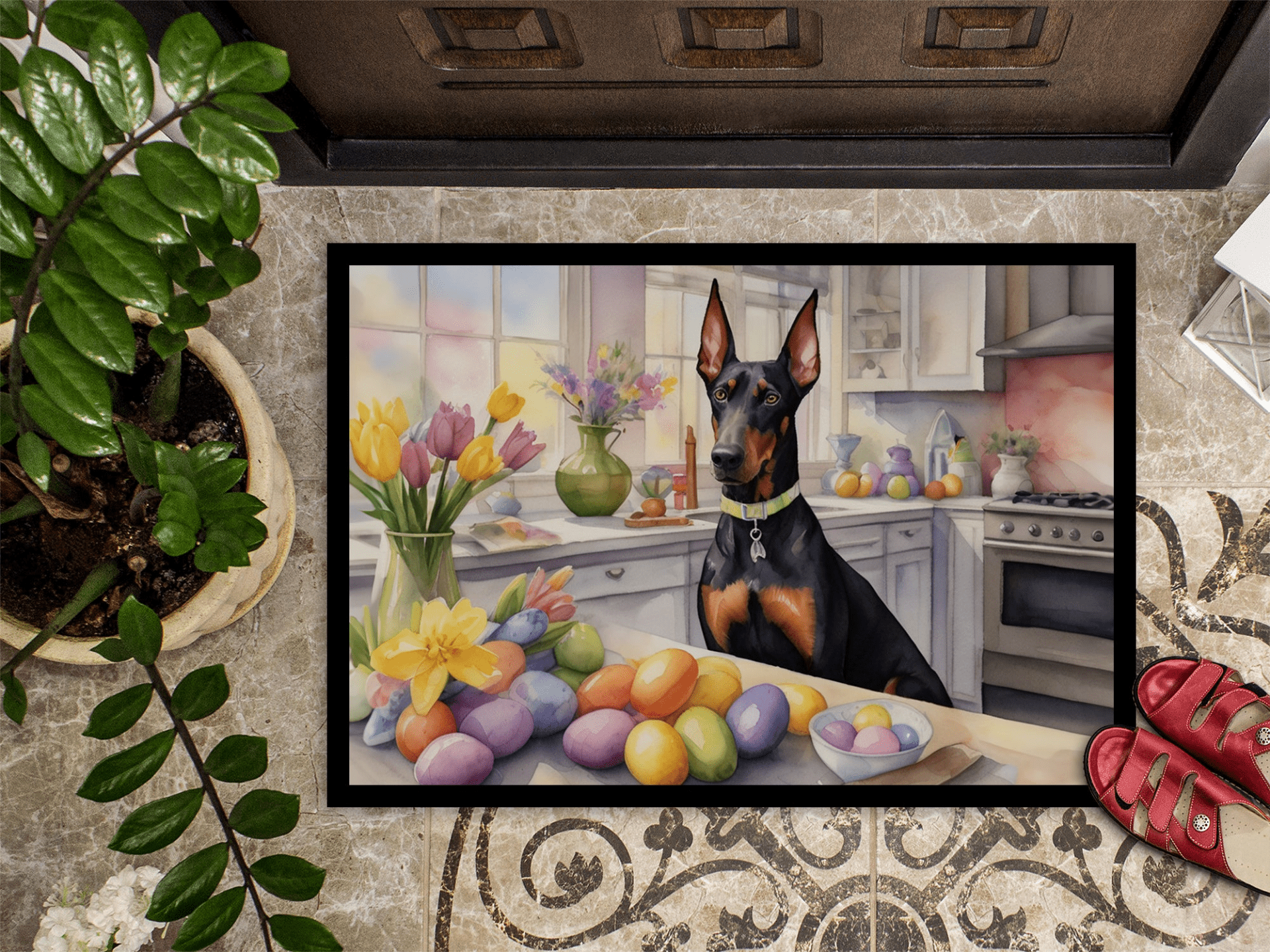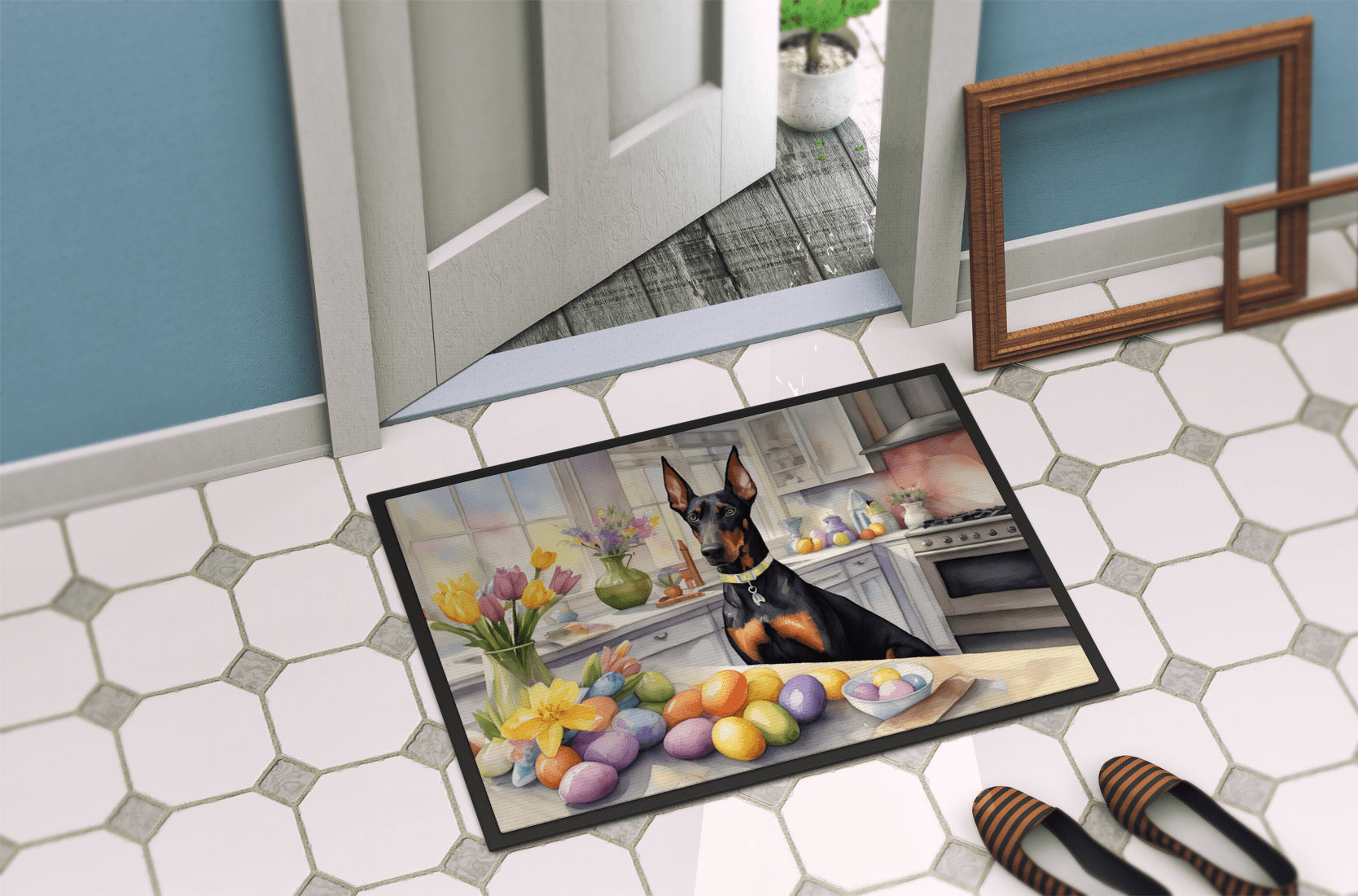 Felpudo con diseño de la raza Doberman Pinscher. Celebra la Pascua con este felpudo. Recibe a tus invitados con estilo con nuestro felpudo con diseño, diseñado para resistir prácticamente cualquier condición climática. Este felpudo, de aproximadamente 45 x 68 cm, está unido con una resistente cinta adhesiva negra. Su capa superior, de fieltro de poliéster, está teñida con la llamativa imagen que se ve en el felpudo. Las capas inferiores le proporcionan estabilidad, mientras que su base de goma está estampada para evitar resbalones y garantizar la seguridad. Nuestro felpudo funciona de maravilla tanto para interiores como para exteriores. Para limpiarlo, simplemente lávalo con agua a presión o con una hidrolavadora; no necesitas limpiadores que produzcan espuma. Evita frotar con un cepillo; en su lugar, opta por la aspiradora. Diseñado, fabricado e impreso en EE. UU., este felpudo es el complemento perfecto para tu porche, cocina exterior, entrada o cualquier espacio interior. Su diseño único lo convierte en una encantadora alfombra decorativa que da la bienvenida a tus invitados y añade un toque de estilo a la decoración de tu hogar.