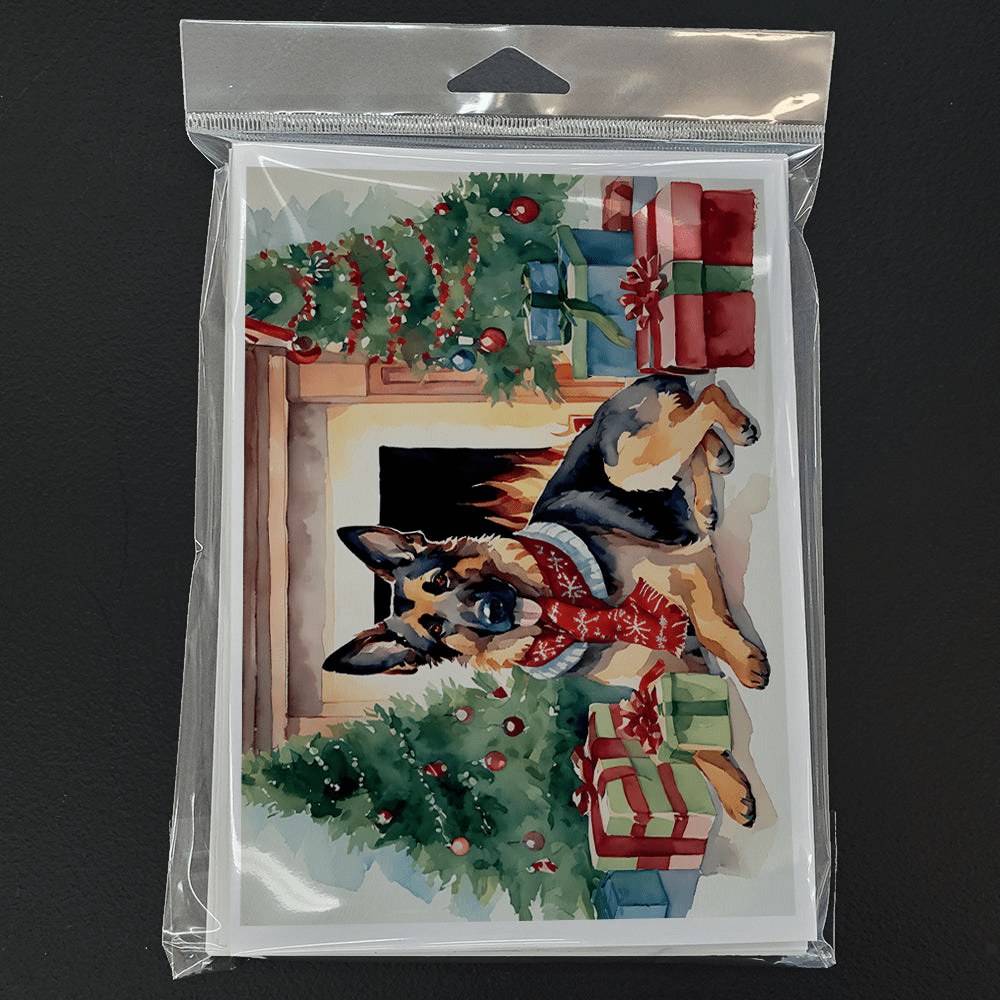 Paquete de 8 tarjetas de felicitación navideñas acogedoras con diseño de pastor alemán