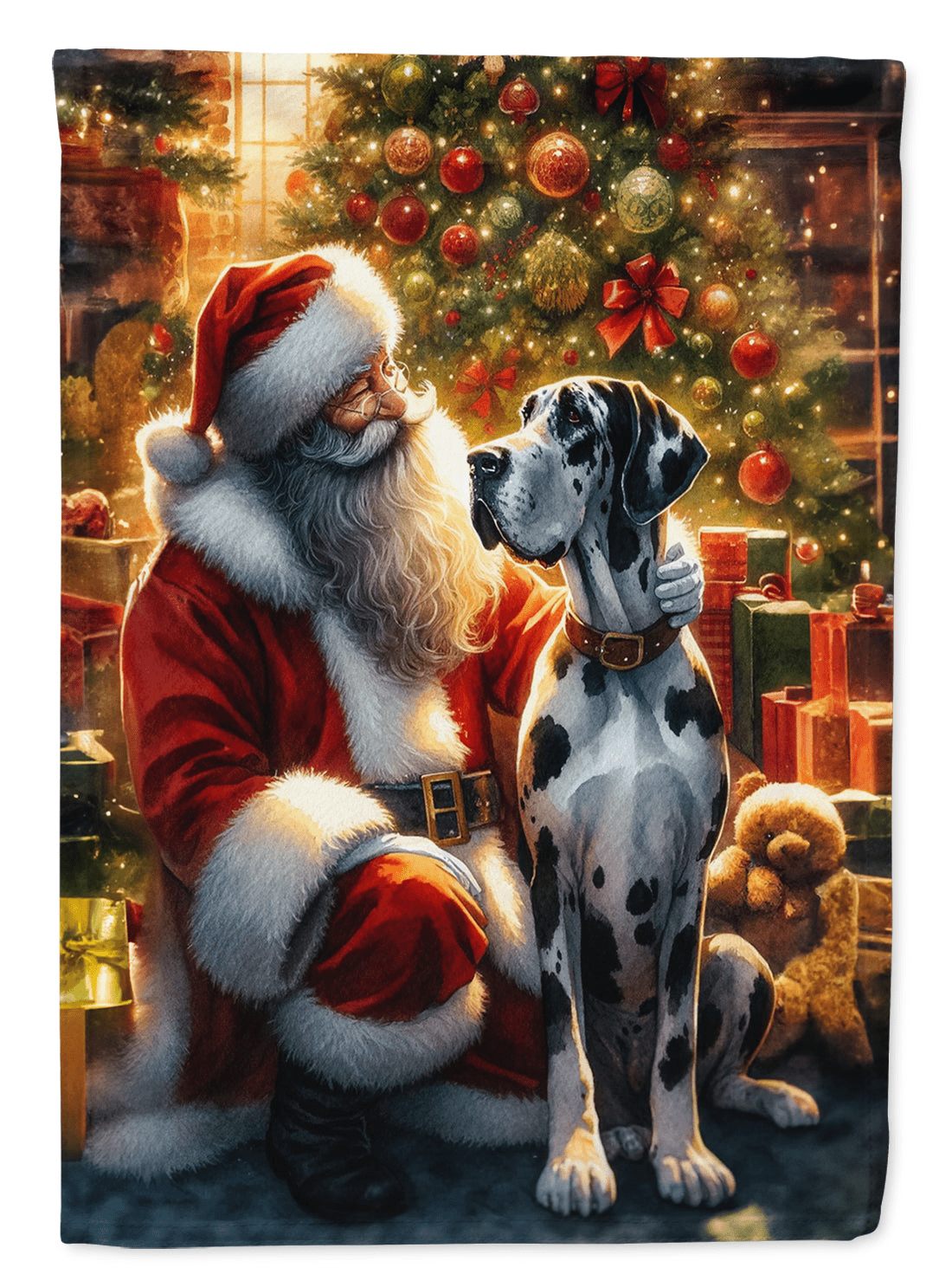 Bandera de jardín con ilustraciones de la raza Gran Danés. Celebra la Navidad con esta bandera navideña. Realza la belleza de tu jardín, patio o jardín con la bandera decorativa Caroline's Treasures, fabricada con orgullo en EE. UU. Fabricada con dos piezas de poliéster grueso de doble cara, esta bandera de jardín de dos capas está diseñada para resistir diversas condiciones climáticas, lo que la hace resistente al agua y a la intemperie. Con texto legible en ambos lados, esta bandera ofrece una experiencia visual encantadora desde cualquier ángulo. Gracias a su mayor peso, destaca entre otras banderas, garantizando estabilidad y durabilidad incluso con viento, lluvia y nieve. Con unas medidas aproximadas de 29,5 x 39,5 cm, esta bandera te permite personalizar tu decoración exterior. Incluye una funda de 3,8 cm cosida, que permite colocarla fácilmente en cualquier soporte estándar o colgador de porche (se vende por separado). Destaca en tu espacio exterior con la bandera decorativa Caroline's Treasures, una bandera vibrante y de alta calidad que añade color y personalidad a tu entorno. Fabricado con orgullo en EE. UU., es un símbolo de artesanía de calidad y atención al detalle.