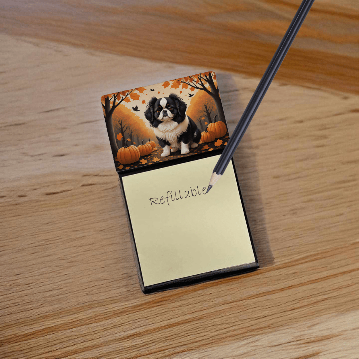 Portanotas adhesivas con ilustraciones específicas de la raza Chin Japonés. Dale un toque de creatividad y estilo a tu escritorio con el portanotas adhesivas decorativo de Caroline's Treasures. Este dispensador de notas adhesivas de diseño único no solo mantendrá tus notas en un solo lugar, sino que también añadirá un toque artístico a tu espacio de trabajo. La parte superior del portanotas presenta hermosas ilustraciones que seguro llamarán la atención. Diseñado para mayor comodidad, este portanotas adhesivas viene con un pequeño bloc de notas adhesivas de 7,6 x 7,6 cm en la parte inferior. El portanotas está diseñado para rellenarse fácilmente; simplemente retira la última hoja de un bloc de notas adhesivas nuevo y pégala en la pizarra. Esto te garantiza tener notas adhesivas siempre a mano. Este portanotas adhesivas es el regalo perfecto. Ya sea para tus compañeros de trabajo, tus amigos de Facebook o incluso para tu peluquero canino, este versátil producto es perfecto. Puedes usarlo para hacer listas de la compra, dejar notas a tus seres queridos o anotar recordatorios importantes. La base es rígida y se puede magnetizar añadiendo un imán del tamaño de una tarjeta de visita en la parte posterior (se vende por separado). Esto la hace aún más versátil, permitiéndote colocarla en el refrigerador o cualquier otra superficie magnética. Con este portanotas adhesivas, no solo organizas tus notas, sino que también personalizas tu espacio.