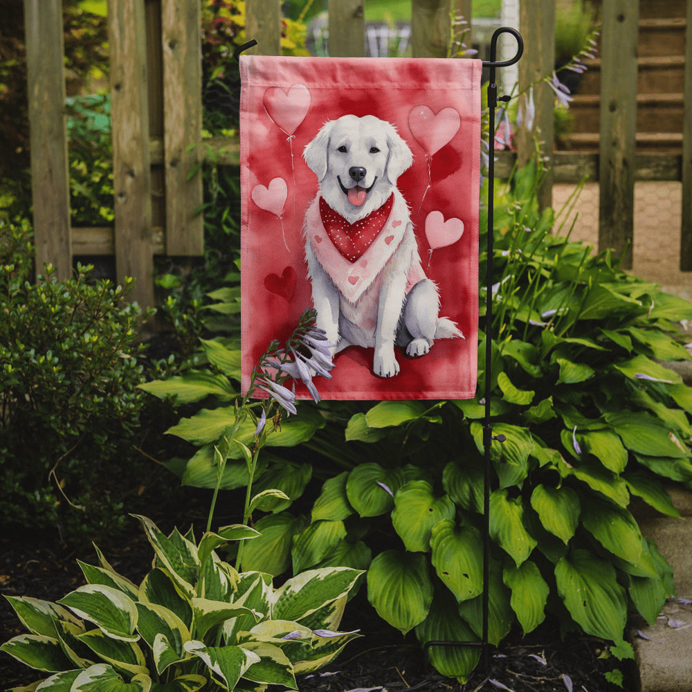 Bandera de jardín con ilustraciones específicas de la raza Kuvasz. Celebra el Día de San Valentín con esta bandera de jardín. Realza la belleza de tu jardín, patio o jardín con la bandera decorativa de Caroline's Treasures, fabricada con orgullo en EE. UU. Elaborada con dos piezas de tela gruesa de poliéster de doble cara, esta bandera de jardín de 2 capas está diseñada para soportar diversas condiciones climáticas, lo que la hace resistente al agua y a la intemperie. Con texto legible en ambos lados, esta bandera de jardín ofrece una experiencia visual encantadora desde cualquier ángulo. Gracias a su mayor peso, destaca entre otras banderas de jardín, garantizando estabilidad y durabilidad incluso con viento, lluvia y nieve. Con unas medidas aproximadas de 29,5 x 39,5 cm, esta bandera te permite personalizar tu decoración exterior. Incluye una funda de 3,8 cm cosida, que permite una fácil fijación a cualquier soporte estándar para banderas de jardín o a un colgador de porche de tamaño jardín (se vende por separado). Dale un toque especial a tu espacio exterior con la bandera decorativa para jardín Caroline's Treasures, una bandera vibrante y de alta calidad que añade color y personalidad a tu entorno. Fabricada con orgullo en EE. UU., es un símbolo de artesanía de calidad y atención al detalle.