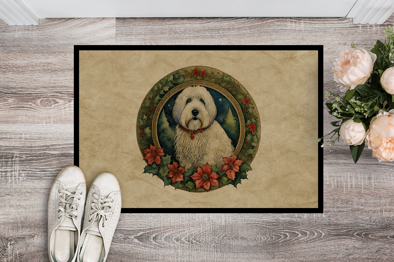 Felpudo con flores navideñas de perro pastor inglés antiguo