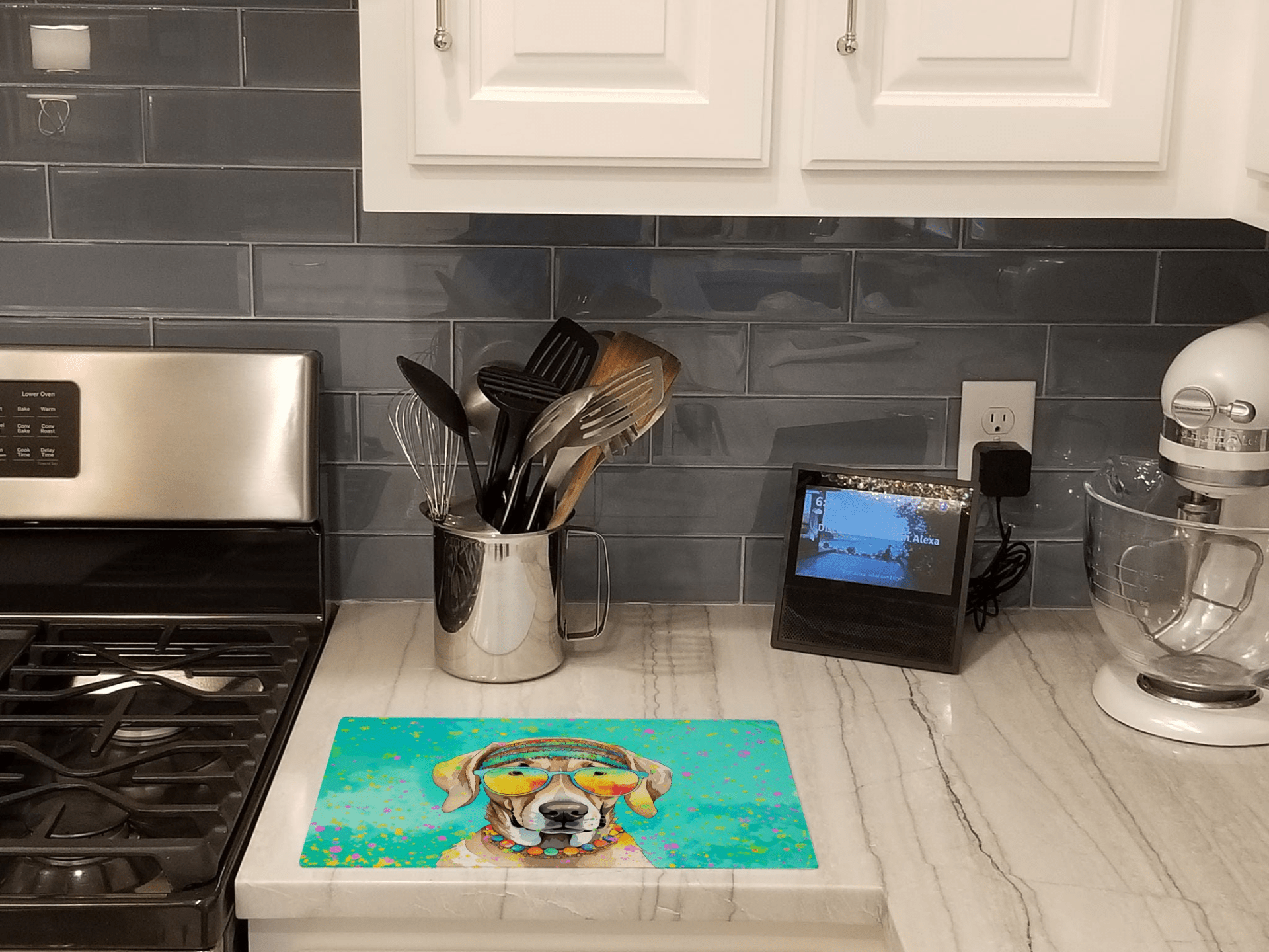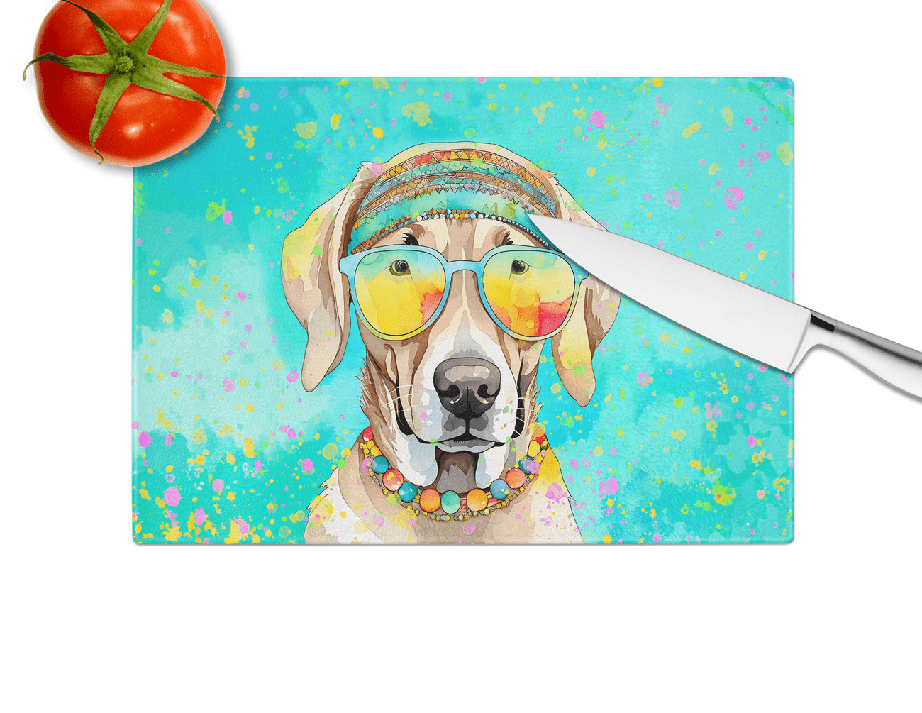 Tabla de cortar de vidrio Weimaraner Hippie Dawg
