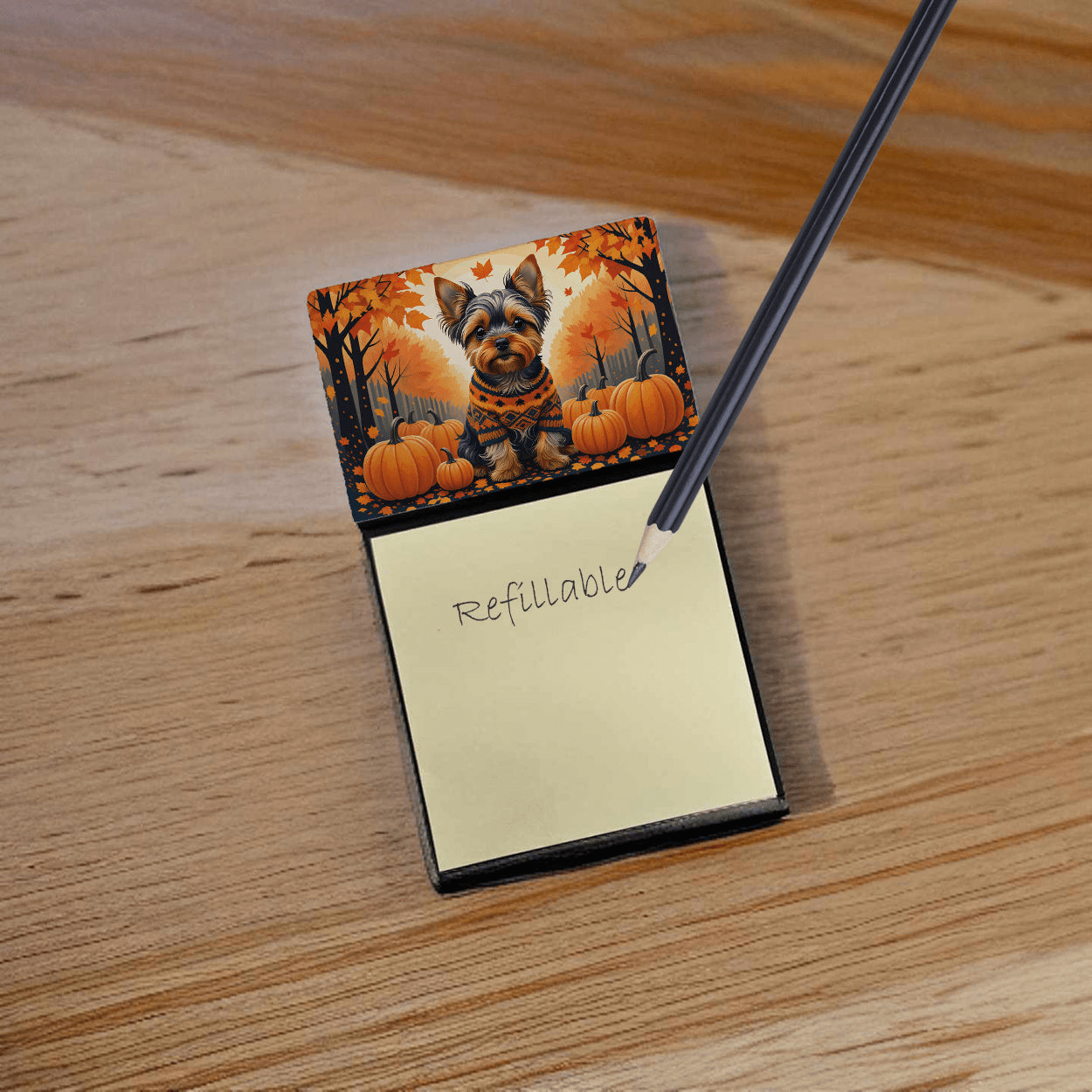 Portanotas adhesivas con ilustraciones de la raza Yorkshire Terrier. Dale un toque de creatividad y estilo a tu escritorio con el portanotas adhesivas decorativo de Caroline's Treasures. Este dispensador de notas adhesivas de diseño único no solo mantendrá tus notas en un solo lugar, sino que también añadirá un toque artístico a tu espacio de trabajo. La parte superior del portanotas presenta hermosas ilustraciones que seguro llamarán la atención. Diseñado para mayor comodidad, este portanotas adhesivas incluye un pequeño bloc de notas adhesivas de 7,6 x 7,6 cm en la parte inferior. El portanotas está diseñado para rellenarse fácilmente; simplemente retira la última hoja de un bloc de notas adhesivas nuevo y pégala en la pizarra. Esto te garantiza tener notas adhesivas siempre a mano. Este portanotas adhesivas es el regalo perfecto. Ya sea para tus compañeros de trabajo, tus amigos de Facebook o incluso para tu peluquero canino, este versátil producto es perfecto. Puedes usarlo para hacer listas de la compra, dejar notas a tus seres queridos o anotar recordatorios importantes. La base es rígida y se puede magnetizar añadiendo un imán del tamaño de una tarjeta de visita en la parte posterior (se vende por separado). Esto la hace aún más versátil, permitiéndote colocarla en el refrigerador o cualquier otra superficie magnética. Con este portanotas adhesivas, no solo organizas tus notas, sino que también personalizas tu espacio.