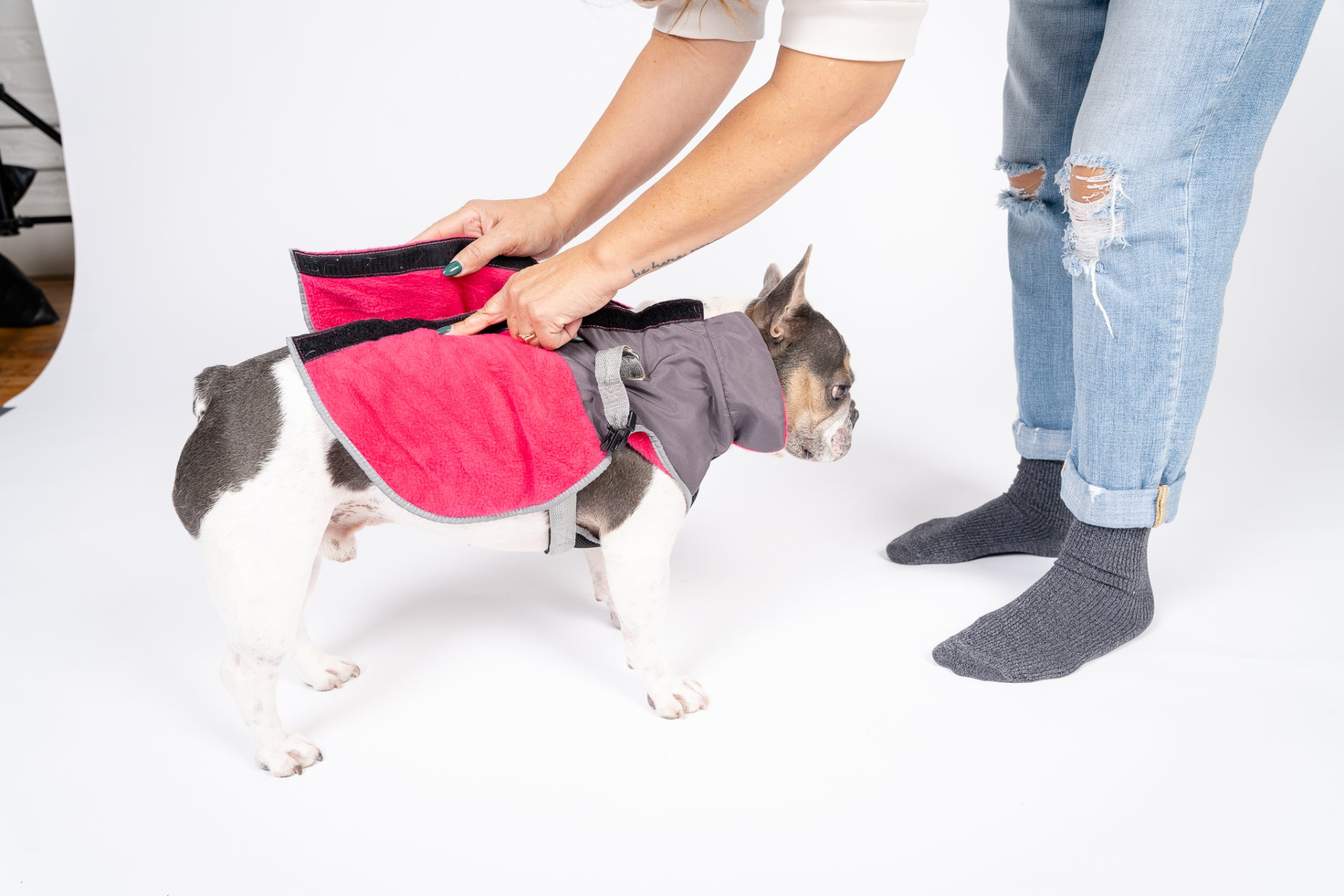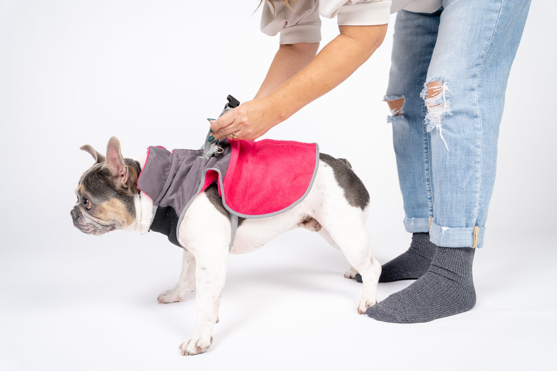 2-in-1 Thermal Dog Fleece Jacket with Removable Harness – Fuchsia