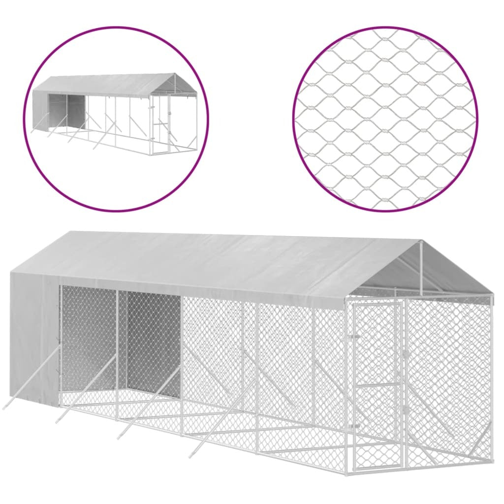 Outdoor Dog Kennel Silver Galvanized Steel, Polyethylene