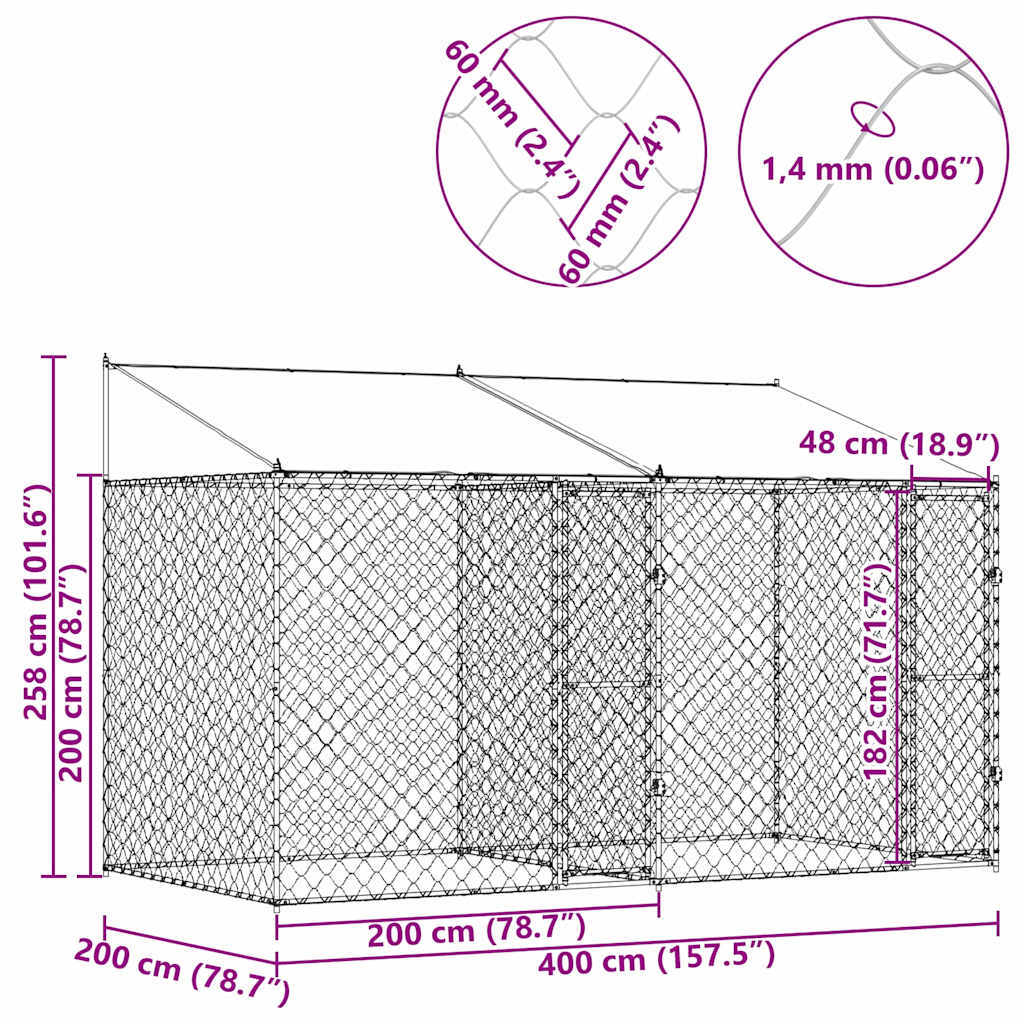 Dog Cage Silver 400 x 200 x 256 cm Galvanised Steel