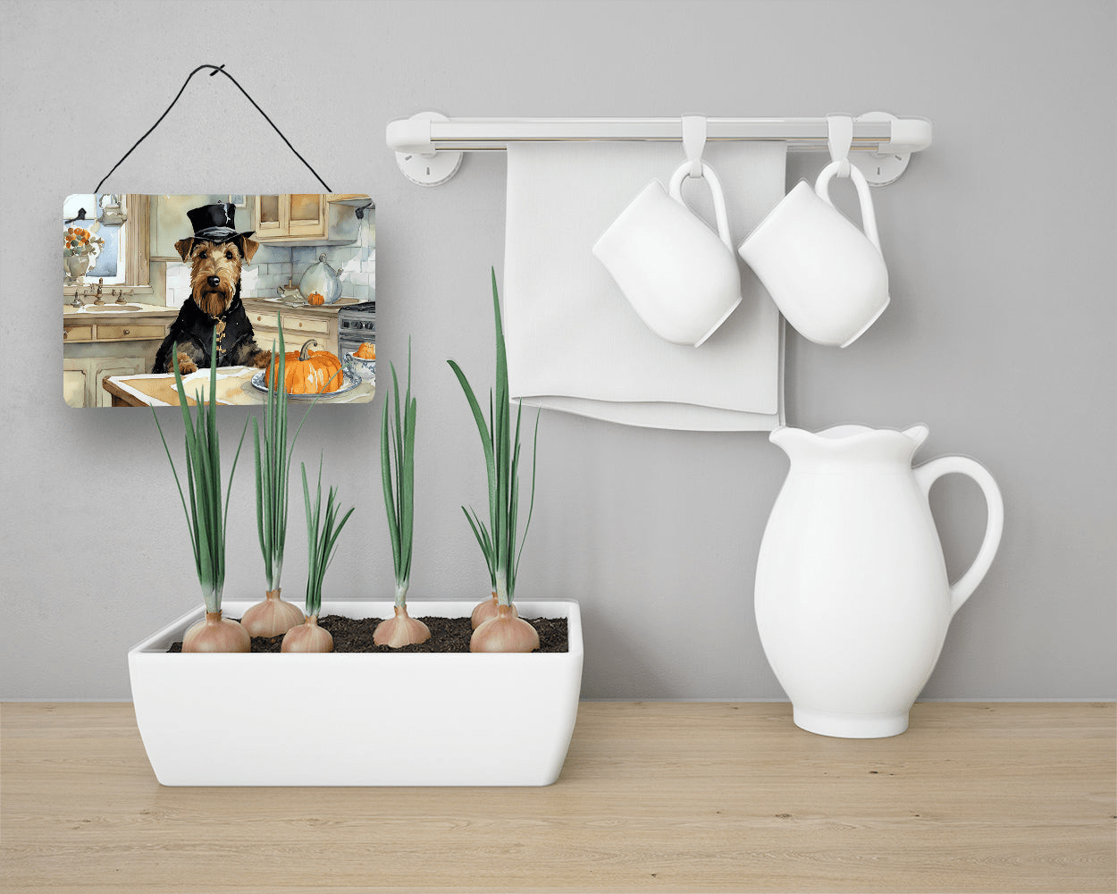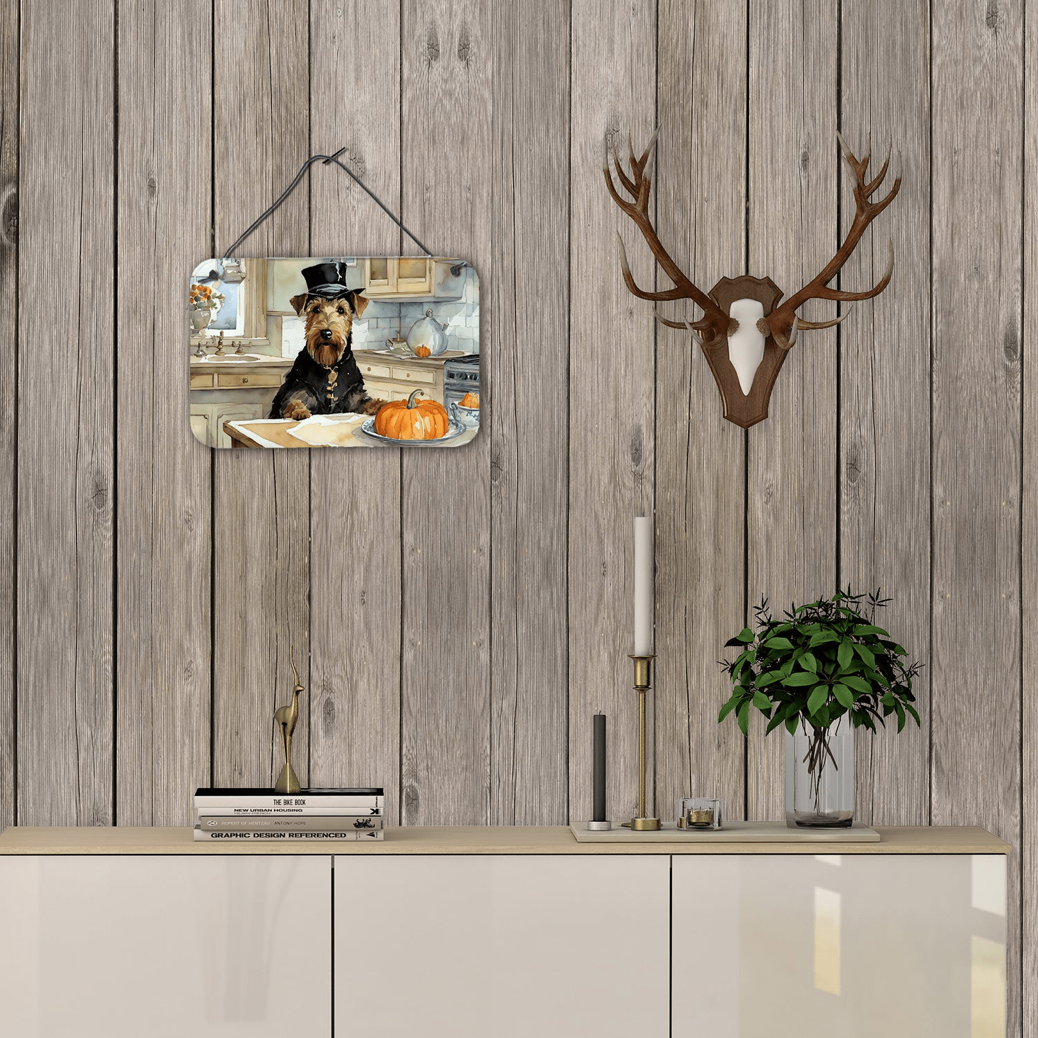 Airedale Terrier Fall Kitchen Pumpkins Wall or Door Hanging Prints