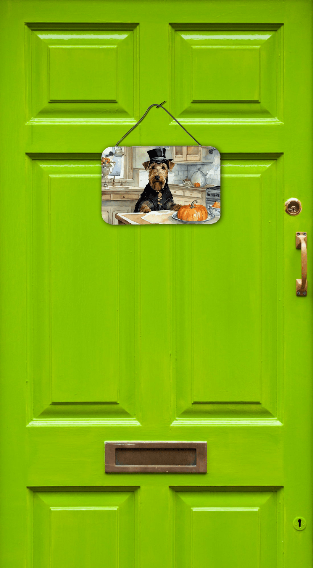 Celebrate Fall with these Airedale Terrier wall or door hanging prints, a playful blend of artful color and canine charm. Crafted from durable aluminum, they bring a splash of seasonal whimsy to kitchens, entryways, or patios. The bold multicolor design brightens any space, while the lightweight frame and rounded corners make hanging effortless. Your space will feel warm, inviting, and a little more glamorous—a perfect everyday accent for pet parents who crave style and comfort.